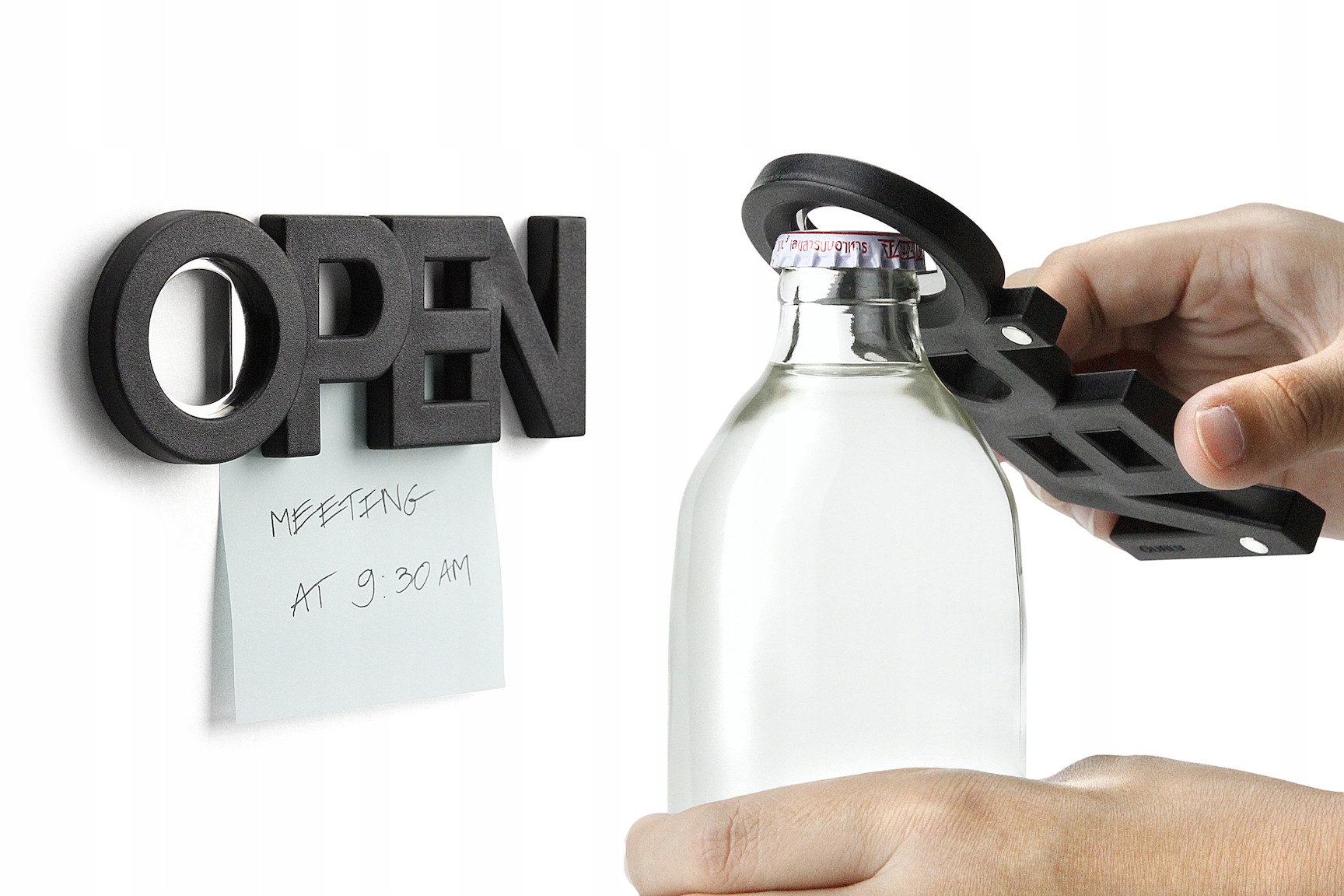 Otwieracz do piwa z magnesem OPEN czarny designerski prezent Dzień Chłopaka