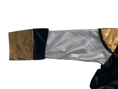 - Верхняя часть наряда состоит из блузки с длинными рукавами и красной накидки. Дополнительно на передней части блузки принт с изображением желтого щита с черным львом.