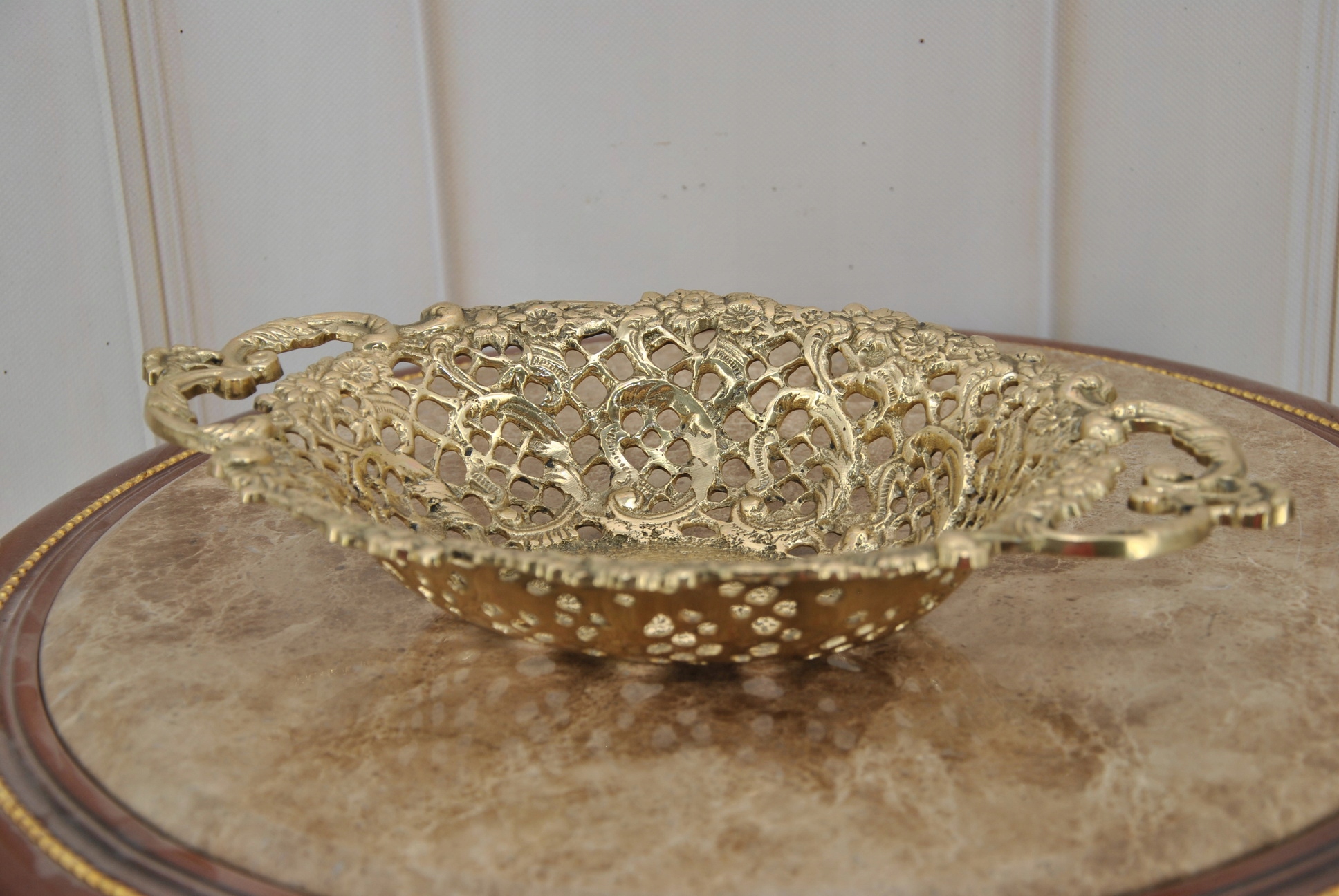 Овальная латунная патера для фруктов - фруктовый червя - миса латунь - украшение