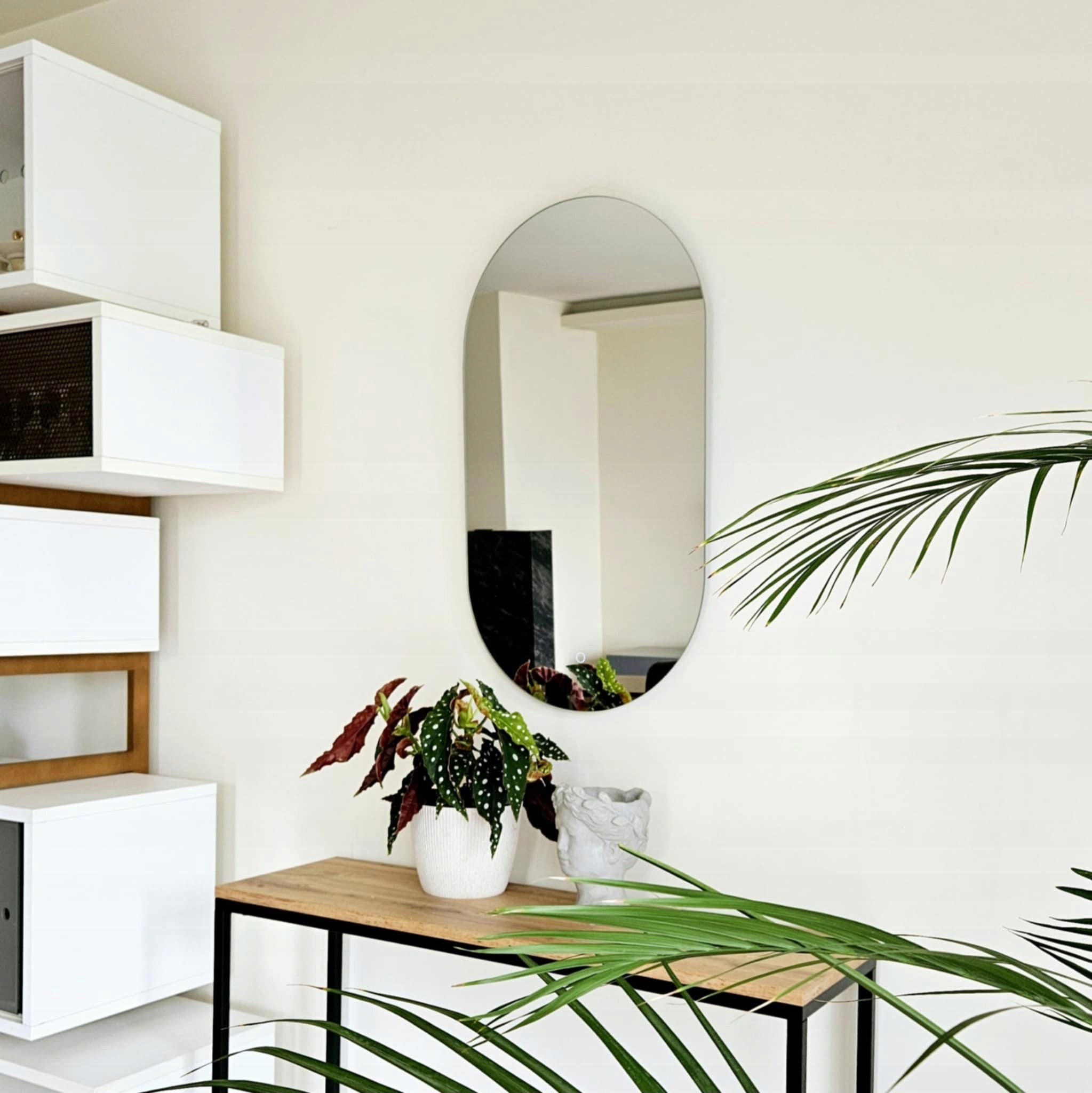 Oval mirror without a frame - safe, smooth, polished trapezoidal cut