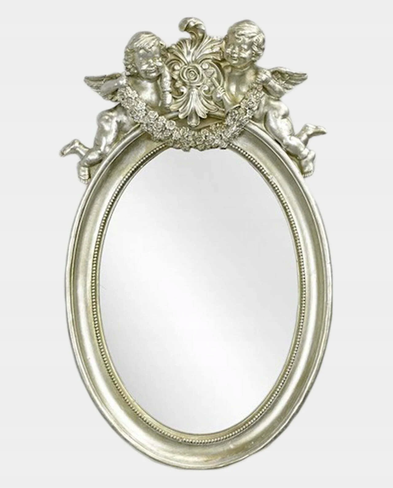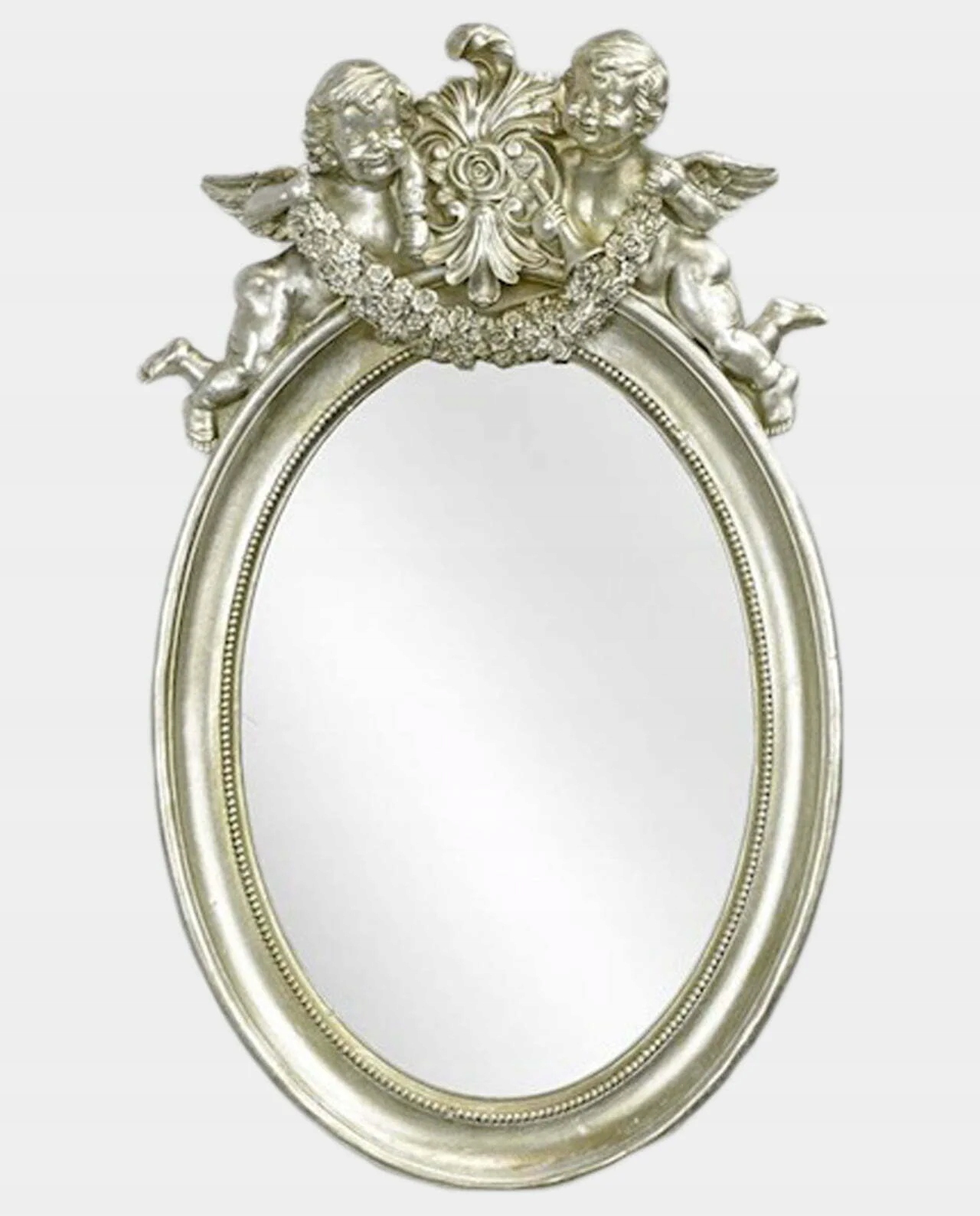 Овальне дзеркало в срібній рамі Ангели з гірляндою