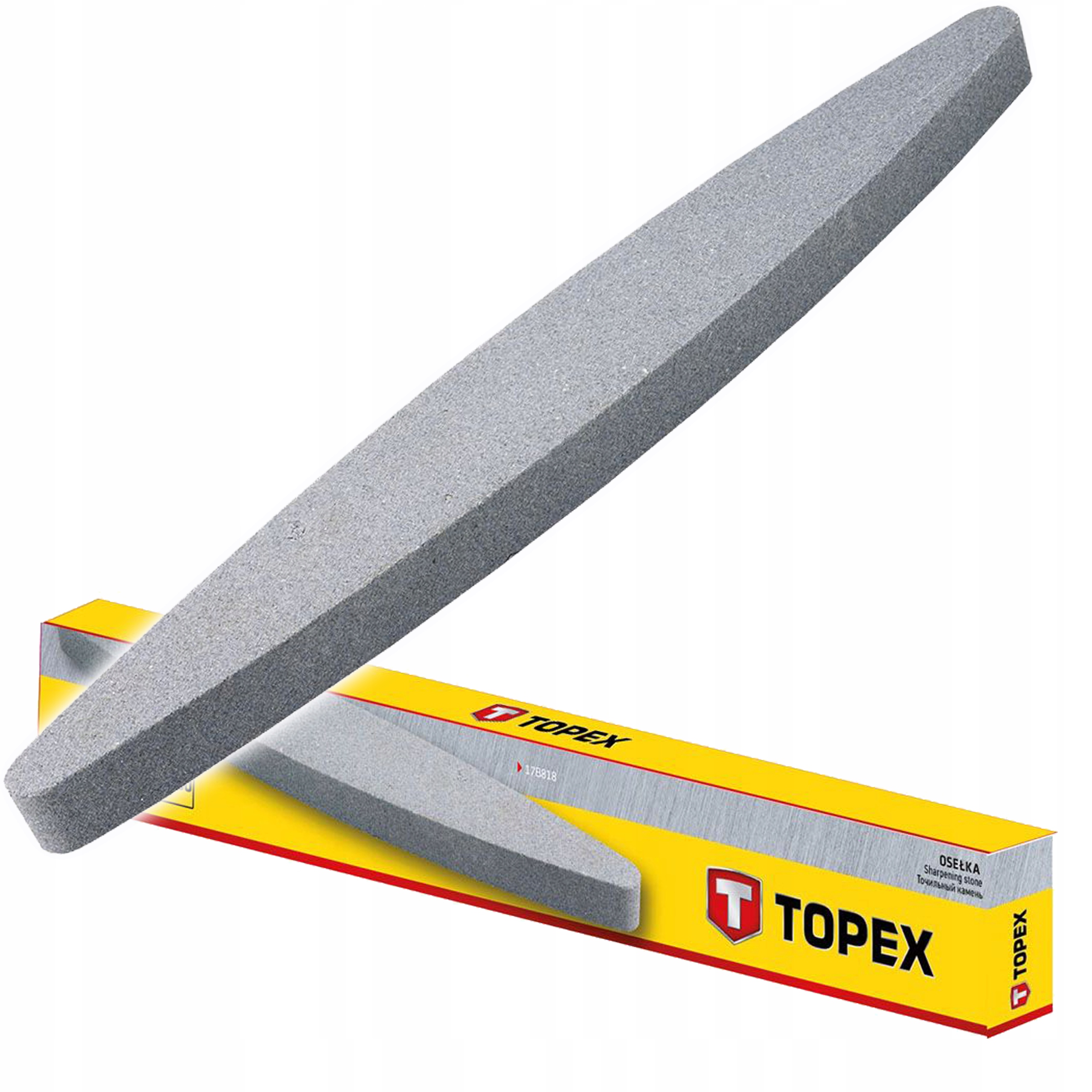 Брусок Topex в овальном блоке, размеры 230 х 35 х 13 мм. Предназначен для заточки инструментов и шлифовки поверхностей.