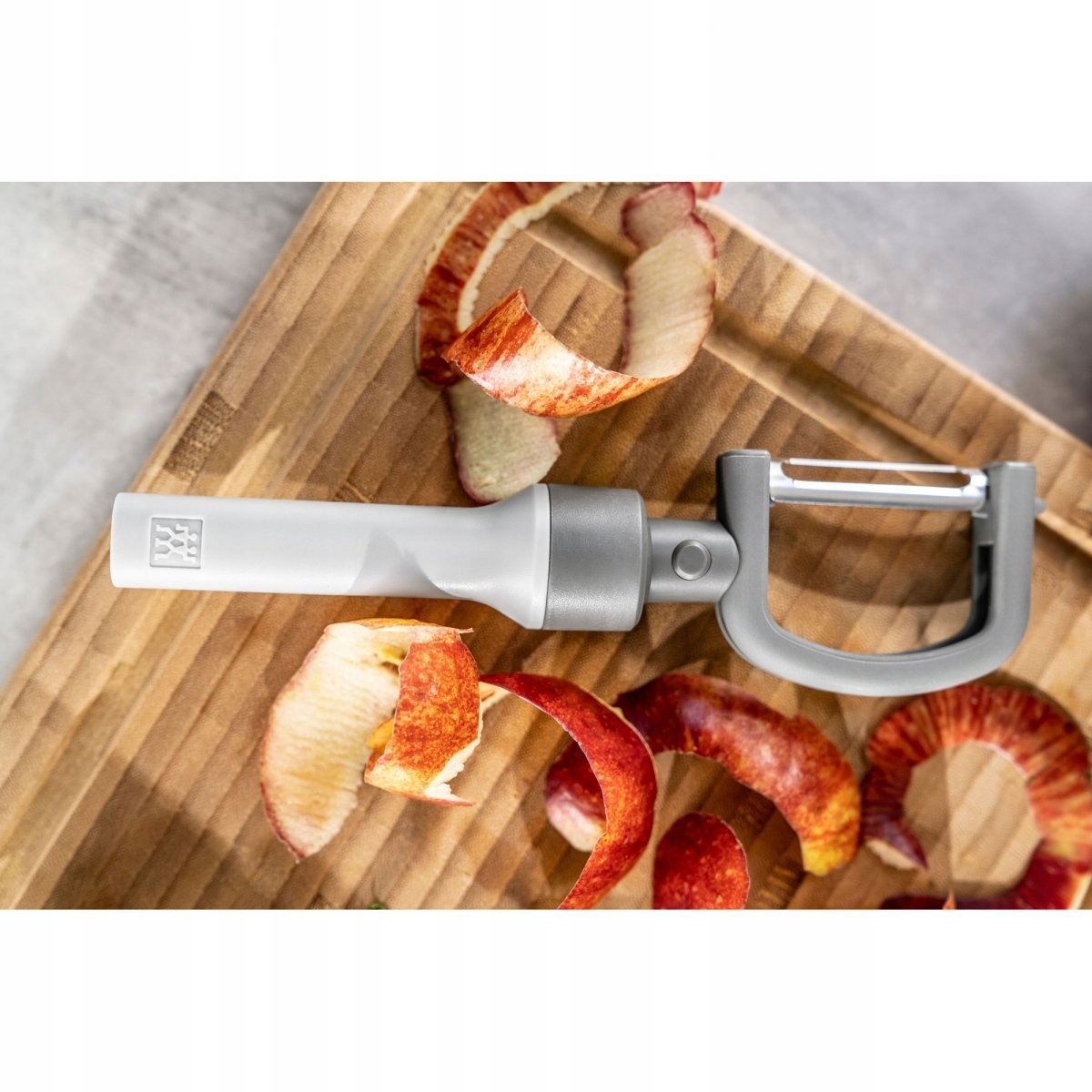 Каждый любитель свежих овощей и фруктов сталкивается с ежедневной необходимостью очищать их от кожуры. Зачастую это отнимает очень много времени. Очиститель ZWILLING Z-Cut 2-в-1 позволит вам изменить это. Возможность использовать его в качестве продольной овощерезки - для очистки круглых продуктов, таких как картофель или яблоки, и в качестве поперечной овощечистки - для спаржи, огурцов и других длинных овощей, делает ее многофункциональным помощником практически для любого вида деятельности на кухне.