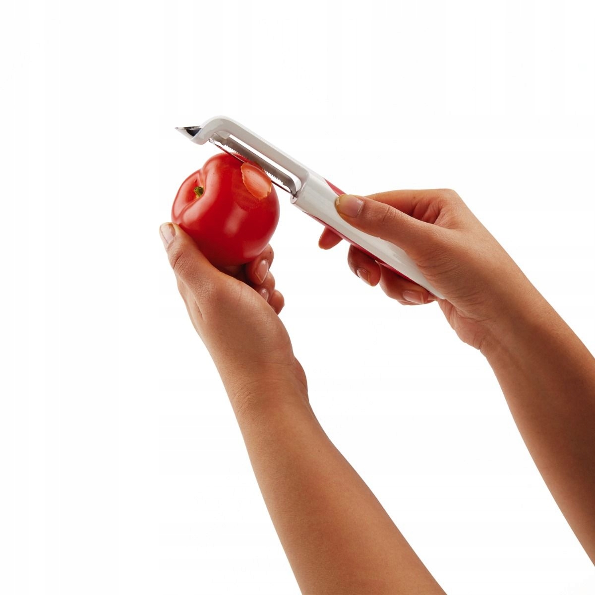 Очистка от швейцарской компании Zyliss – полезный помощник на каждой кухне. Лезвие изготовлено из качественной закаленной стали – долго сохраняет остроту. Эргономичная, удобная ручка идеально лежит в руке. Острая стальная поверхность позволяет легко удалять поврежденные части фруктов и овощей. Зубчатое лезвие идеально подходит для очистки мягкой кожицы, например, помидоров, киви и т. д.