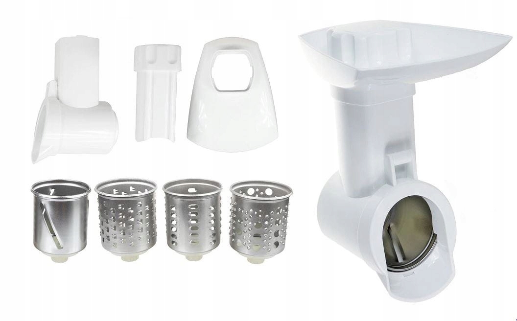 Оснащена четырьмя сменными терки из нержавеющей стали: