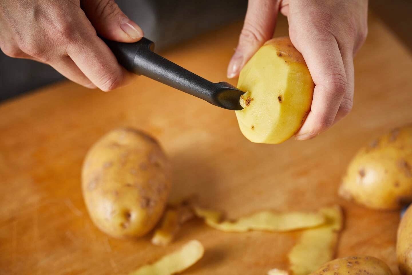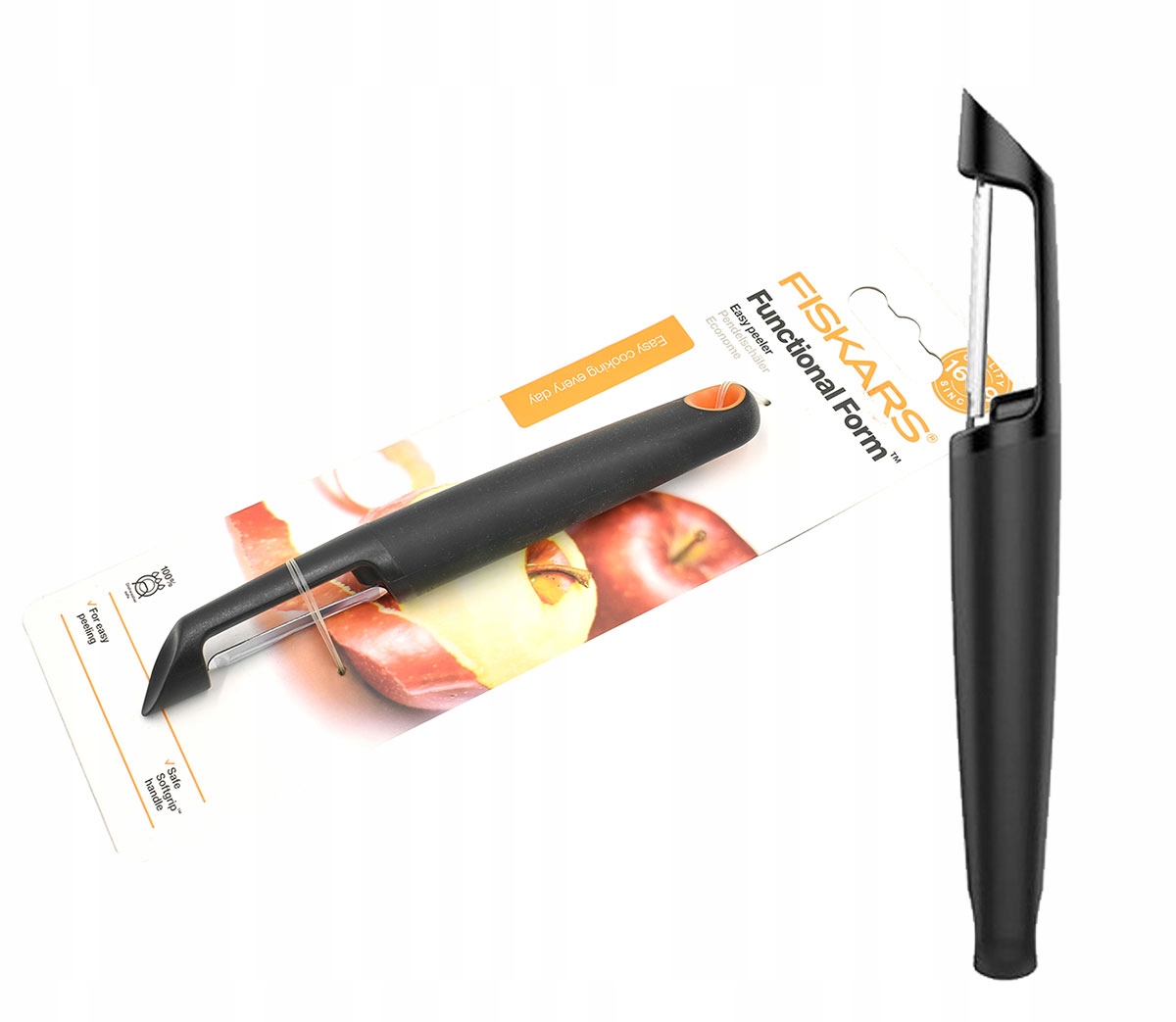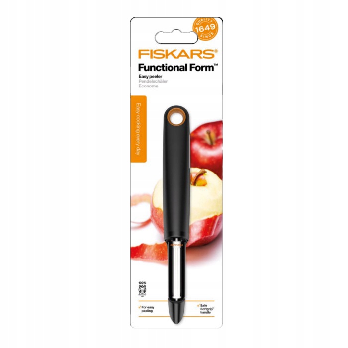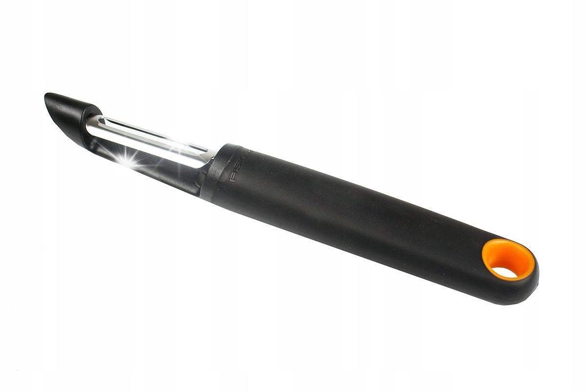Идеально подходит для очистки фруктов и овощей - скребок функциональной формы Fiskars с подвижной головкой, имеет ручку Softgrip ™.