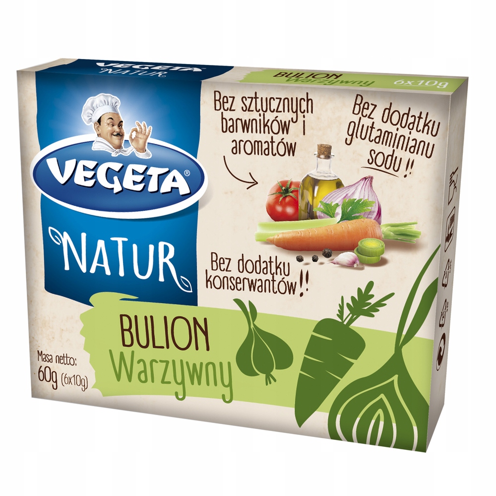 Если вы ищете знакомый традиционный вкус идеального супа, у нас для вас хорошие новости. Овощной бульон Vegeta Natur без глютамата натрия – полезный маленький кубик, наполненный специями, который обеспечит идеальный вкус ваших блюд.
