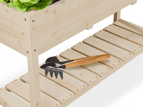 Встроенное приподнятое хранилище идеально подходит для хранения садовых принадлежностей. Он обеспечивает практичную поверхность для инструментов и аксессуаров, делая работу в саду более эффективной.