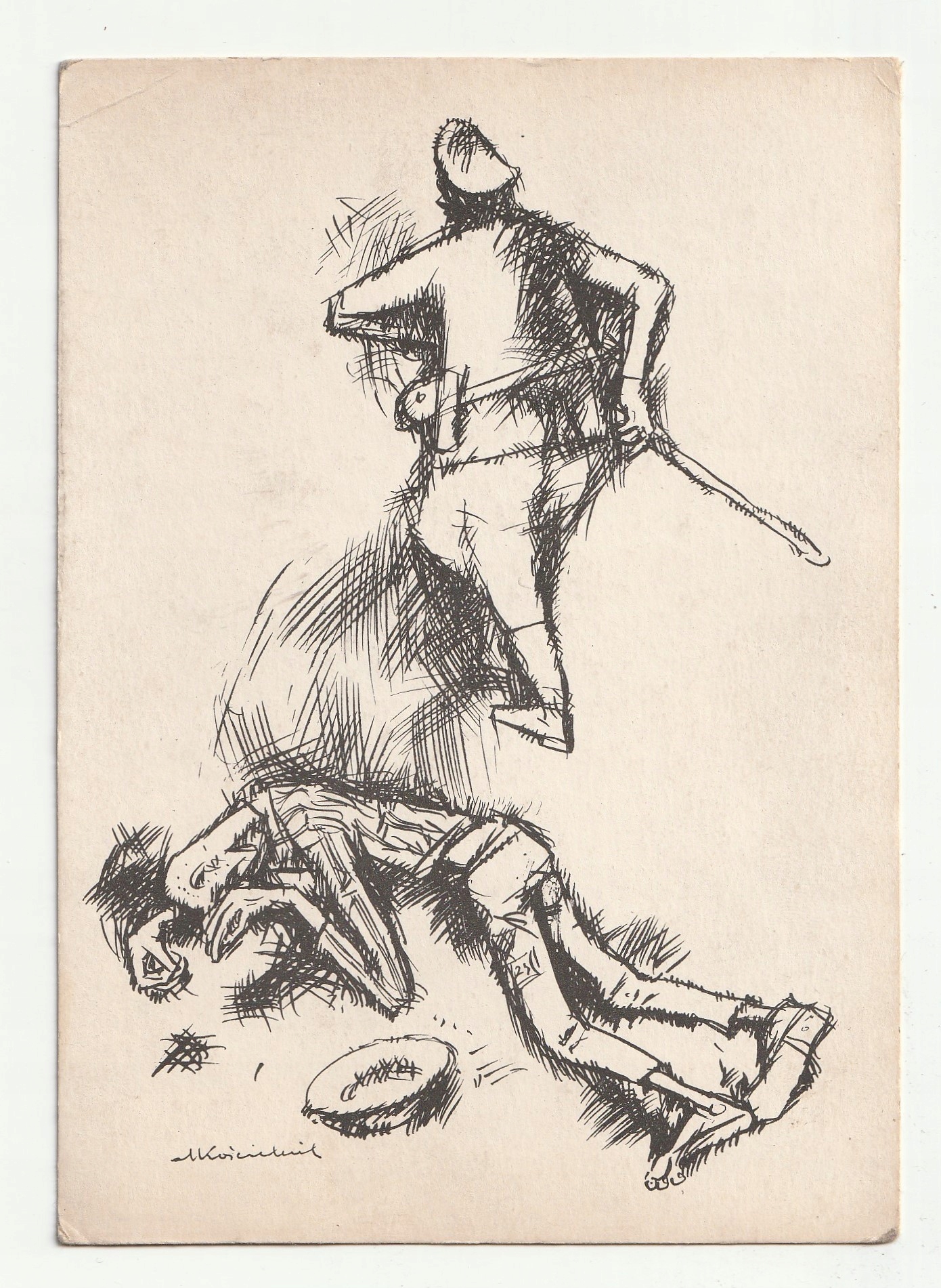 ОСВЕНЦИМ, Освенцим. МЕЧЕСЛАВ КОСЦЕЛЬНЯК из серии «Освенцим» - Последняя чаша, рисунок 1962 года. Потертости по углам, загибы по краям. Нет тиража.