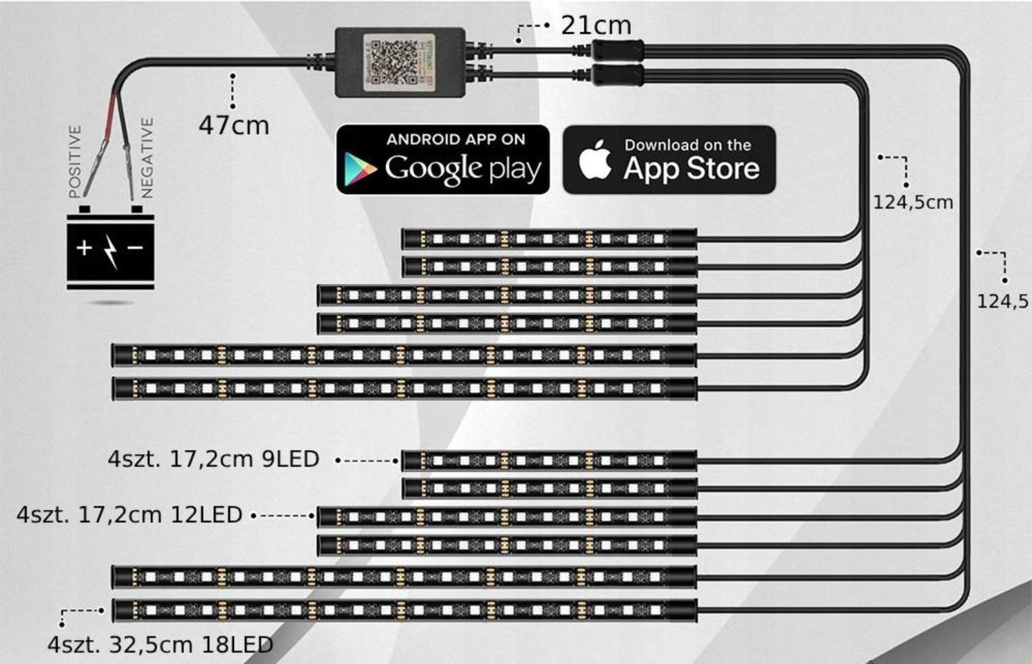 OŚWIELENIE TAŚMA LED RGB NA MOTOR APLIKACJA 12W1