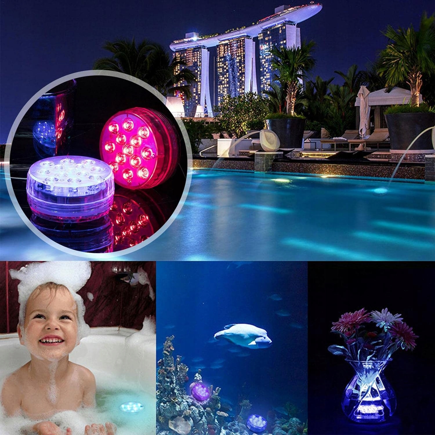 Светодиодные фонари для бассейна можно использовать для украшения бассейна-аквариума, а также для украшения таких мероприятий, как праздничные вечеринки, дни рождения, свадьбы и вечеринки у бассейна. р >
