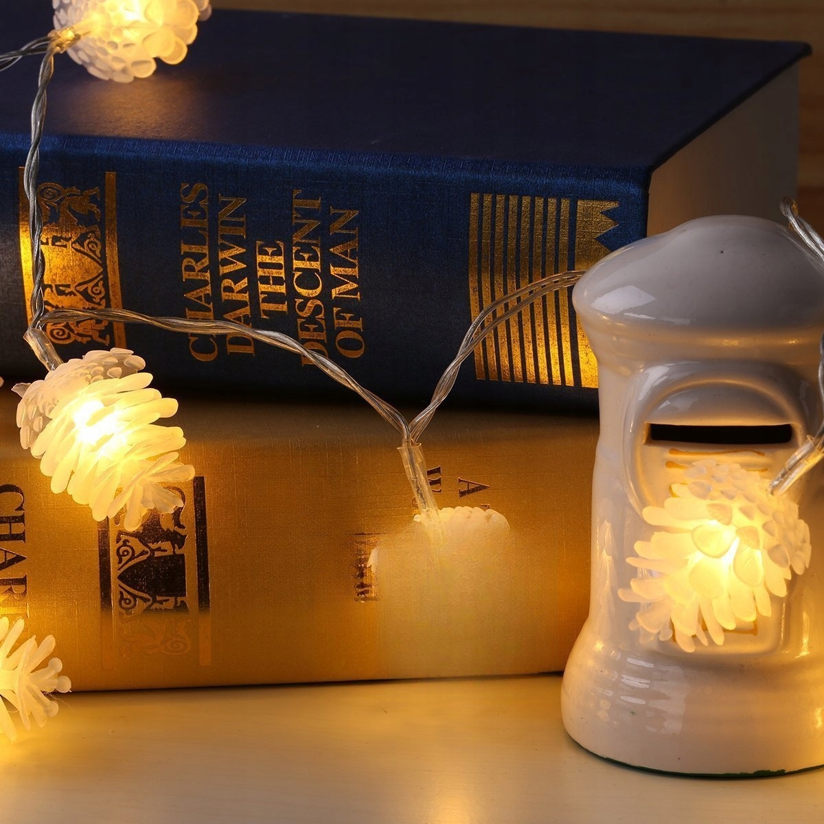 ✅Этот предмет представляет собой набор из 20 светильников в форме сосновых шишек. Все светодиоды водонепроницаемы и экологически безопасны. Это можно сделать где угодно, если требуются батарейки. Он обладает мощностью и низким рабочим напряжением, поэтому может служить долго. Его смело можно использовать для декора и освещения.