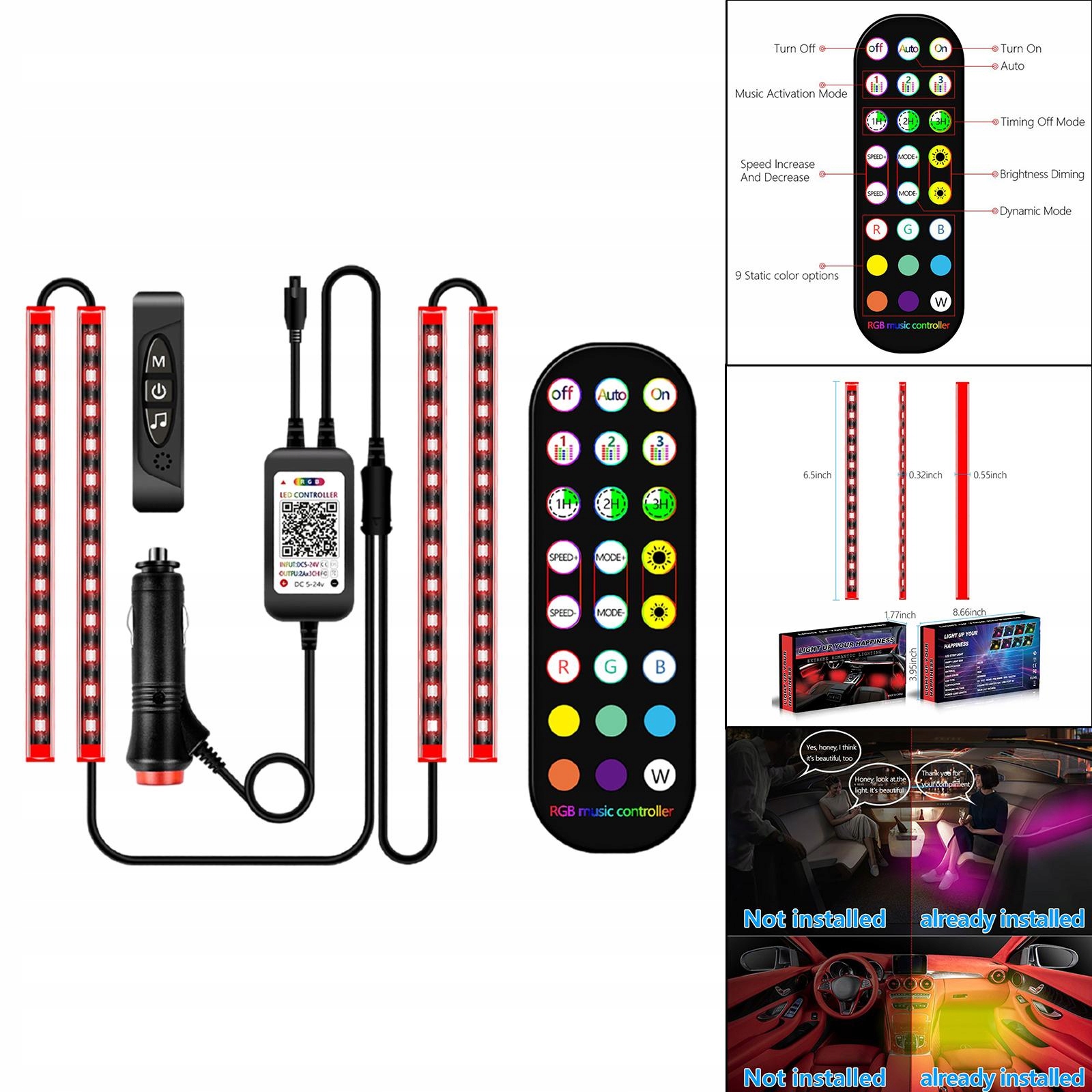 Выделите 48 светодиодных бусин: светодиодные лампы на световых полосах из 4 частей, высокая яркость, длительный срок службы. Несколько видов музыкальных режимов обеспечивают более высокую эффективность.