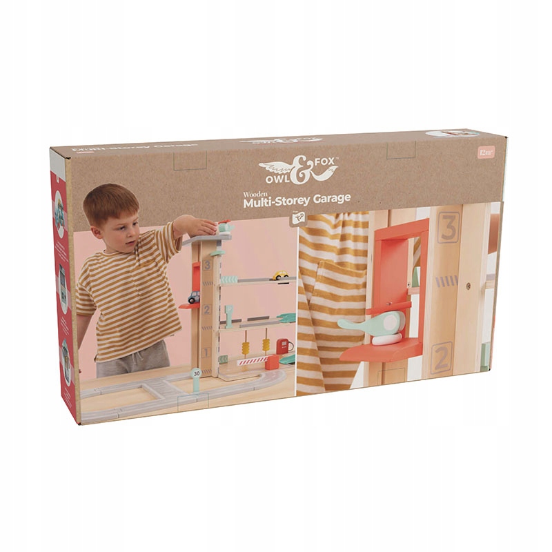 Перенесите своего малыша в мир, полный воображения и приключений, благодаря деревянному многоуровневому гаражу из коллекции Owl & Fox.