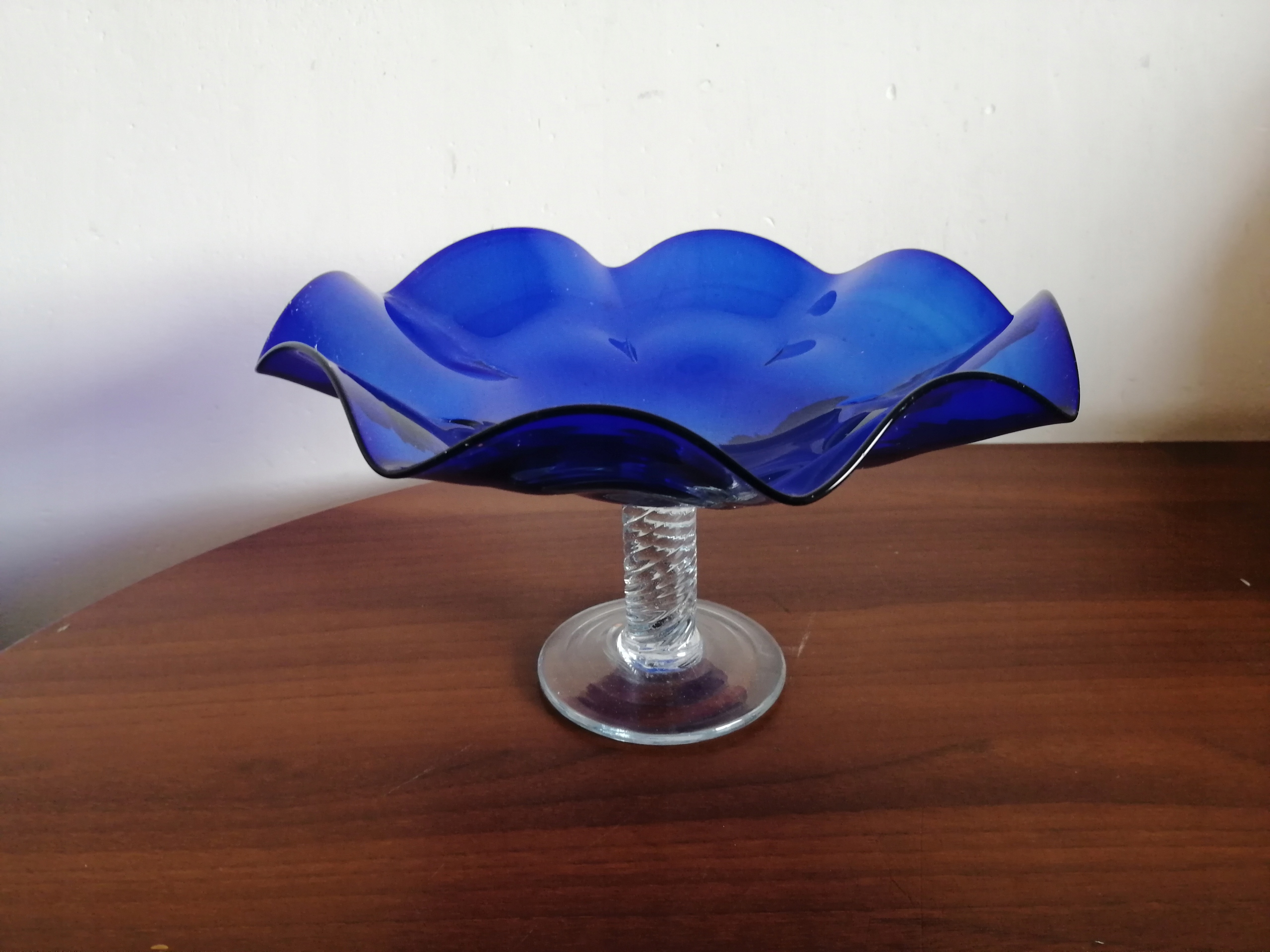 OWOCARKA SZKLANA KOBALTOWA SZKŁO Z PRL JAK ZĄBKOWICE
