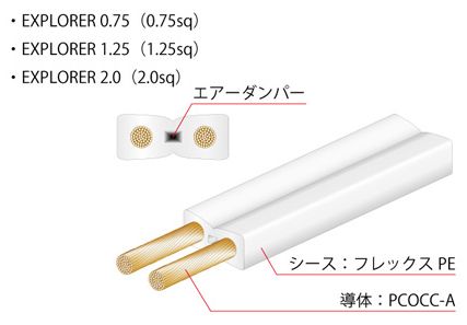 FLEX PE (полиэтилен), обладающий одновременно желаемыми электрическими свойствами и высокой гибкостью, был впервые использован в серии EXPLORER. FLEX PE производится путем добавления веществ к полиэтилену в соответствующем порядке, что повышает его гибкость без ухудшения диэлектрической проницаемости. Особое внимание японцы также уделили тому, чтобы диэлектрик как можно лучше прилегал к проводнику, заполняя пустые места. Эта топология значительно повышает скорость передачи.