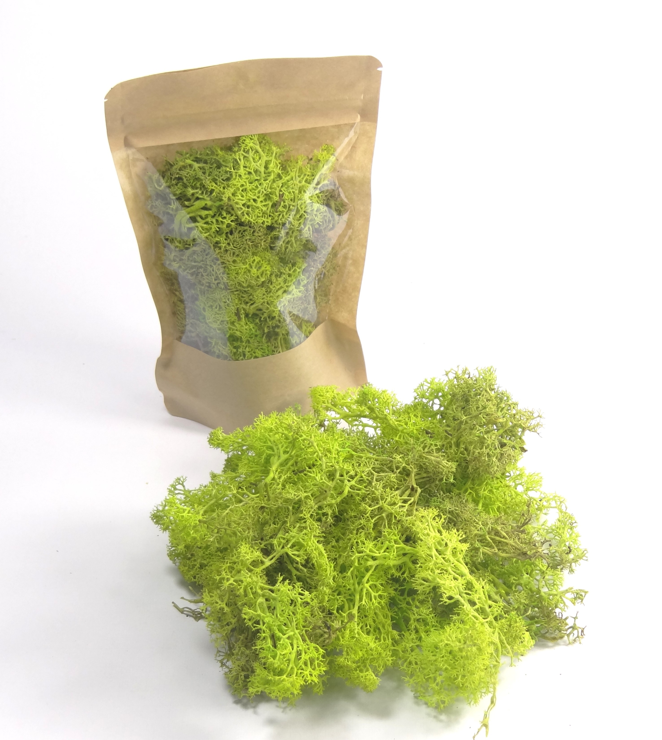 100% натуральный мох хлоботек светло-зеленого цвета. Натурального цвета.