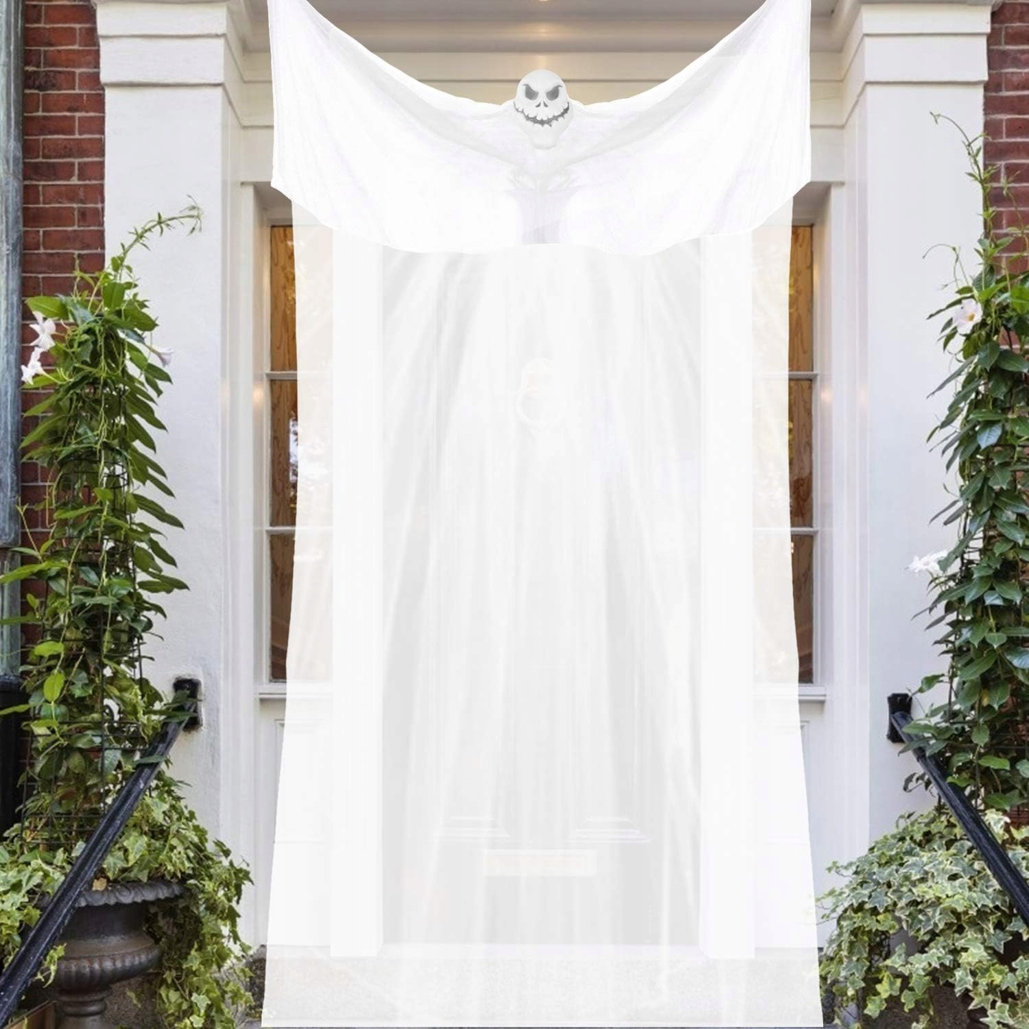 👻 Висящий призрак сделан из высокого -качественный пластик ПВХ и марля. Марля легкая и тонкая, прочная и ее нелегко порвать. Пластиковое лицо и марля — идеальное украшение для вечеринки в честь Хэллоуина.