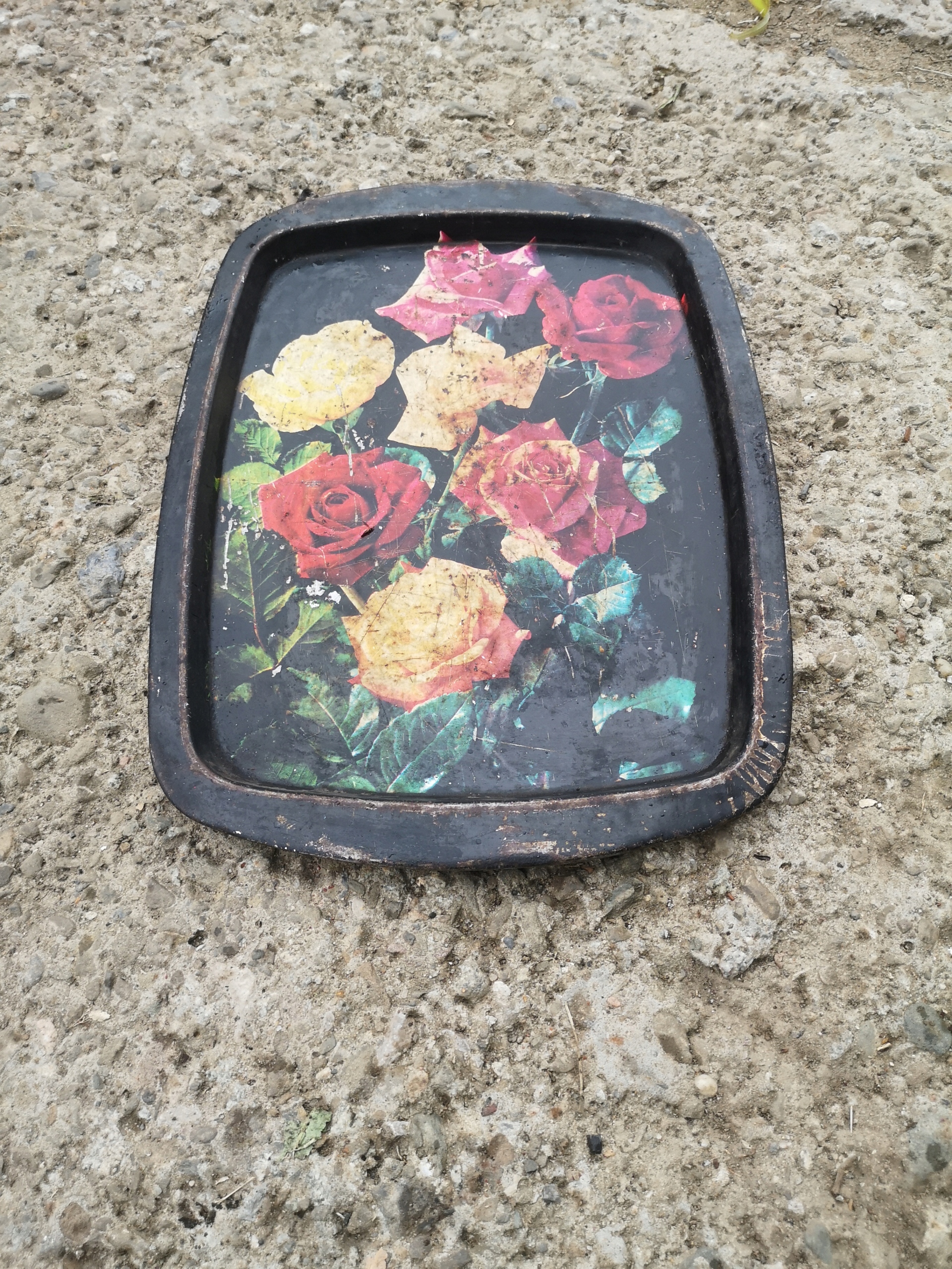 Старый металлический поднос украшен