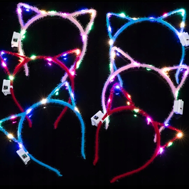 OZDOBNA OPASKA NA GŁOWE USZY KOTA KOCIE KOTKA LED ŚWIECĄCE UNIWERSALNE