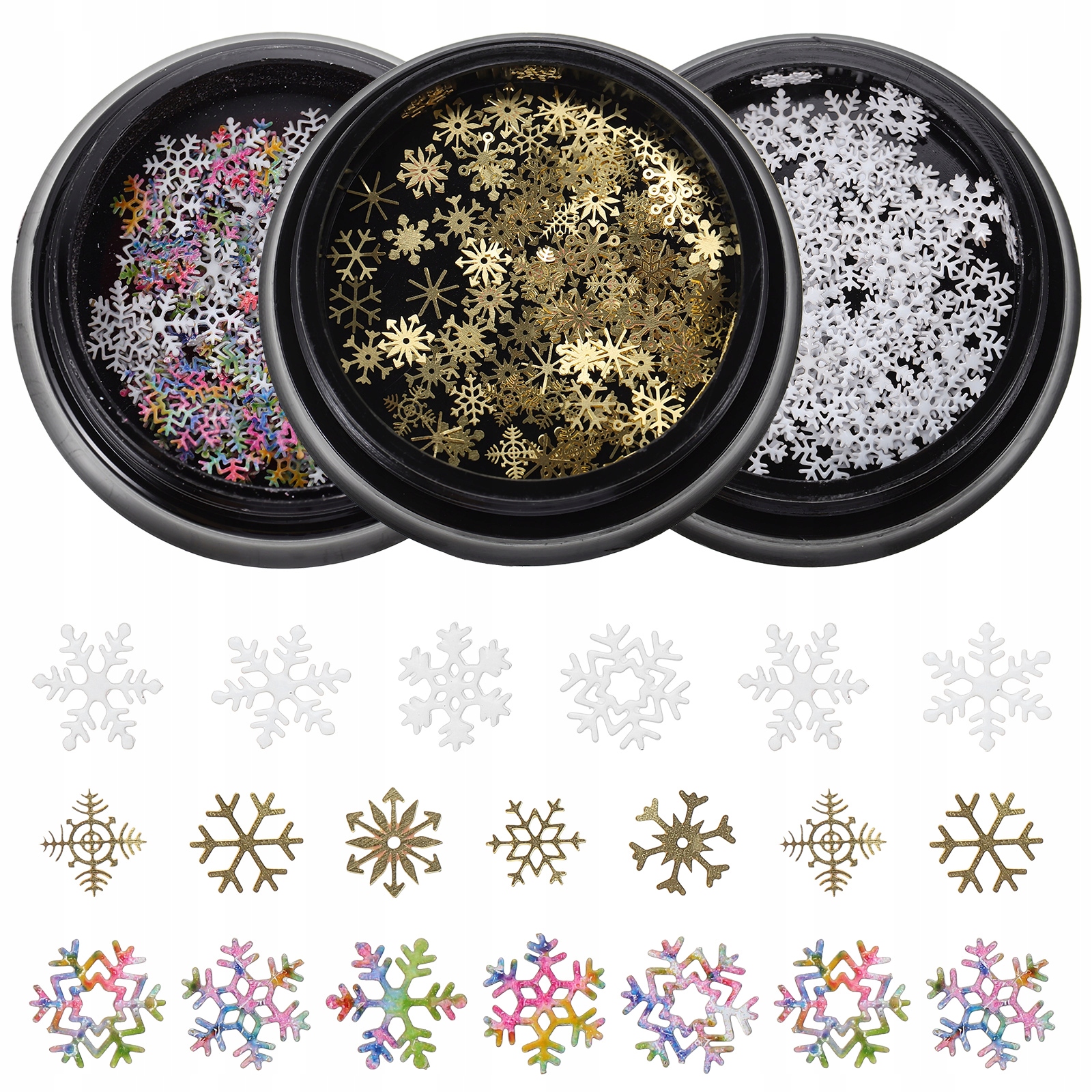 OZDOBY ŚWIĄTECZNE NA PAZNOKCIE DEKORACJE ŚWIĄTECZNE ŚNIEŻYNKI CEKINY NA PAZNOKCIE