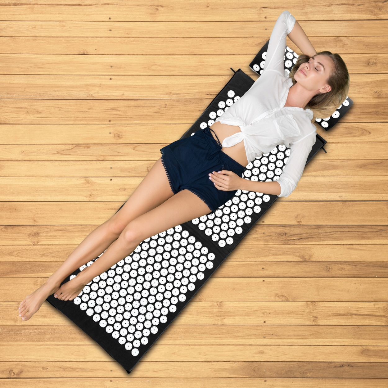 Использование коврика для здоровья для акупрессура чрезвычайно просто. Вы можете использовать коврик для акупрессура, лежа, сидя , например, во время работы или стоя . Просто положите его на пол, кровать или стул и медленно поставьте голову к подушке. Помните это!