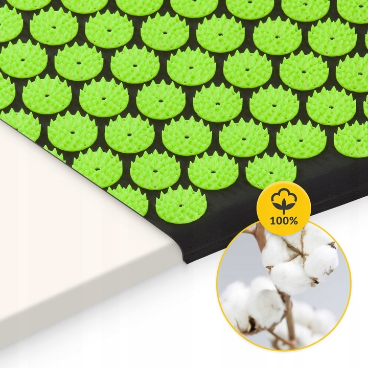 Акупрессурный коврик с подушкой 4FIZJO — это продукт премиум-класса высочайшего качества. Пододеяльник изготовлен из 100% хлопка. Этот нежный и приятный на ощупь натуральный материал обеспечивает дышащую способность и правильную циркуляцию воздуха. Это делает коврик безопасным как для кожи, так и для окружающей среды. Удобство и комфорт лежания или сидения обеспечивает мягкий поролон, которым наполнен коврик и наволочки.