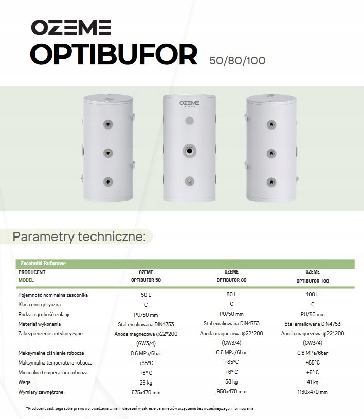 буферный бак Optibor 80 (80 литров) является линейкой премиум-класса представляет собой энергетический буферный бак, изготовленный из высококачественной эмалированной стали DIN4753, предназначенной для работы в стандартных условиях работы, как в системах нагревания, так и в системах нагревания. Используя технологические решения последнего поколения, клиент получает современное и эффективное многофункциональное гидравлическое устройство, которое можно успешно использовать в качестве буферного резервуара, как в системах отопления и охлаждения, гидравлической сцепления и дистрибьютора в системах с тепловым насосом или водонагревателем после установки дополнительного нагреваемого элемента. Контейнер подходит для отопления и холодильника, его можно использовать в системах с планерами, отоплением/охлаждением пола, радиаторам с низкой температурой, в центральных установках дома, тепловых насосах, газовых котлах и твердым топливе. Как один из немногих из такого типа, он имеет сертификат PZH, а также может использоваться для приготовления CWU для продовольственных и санитарных целей.