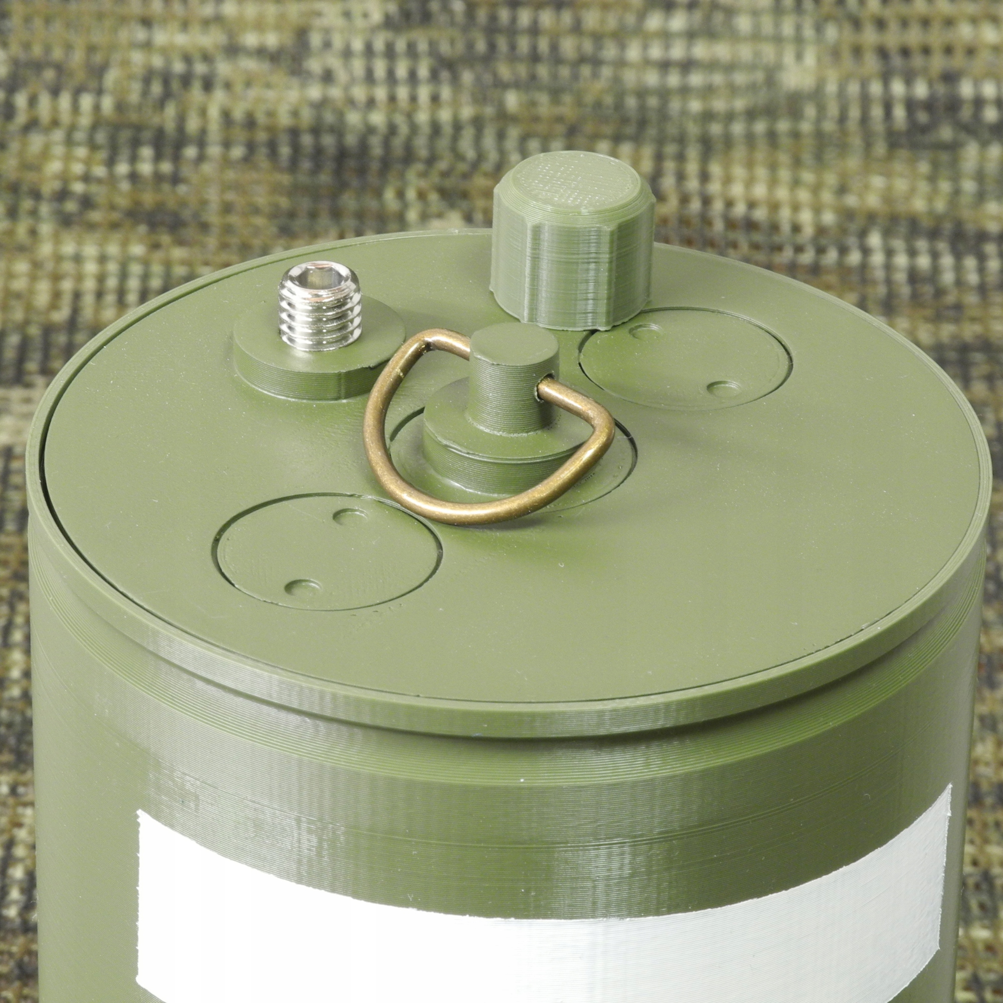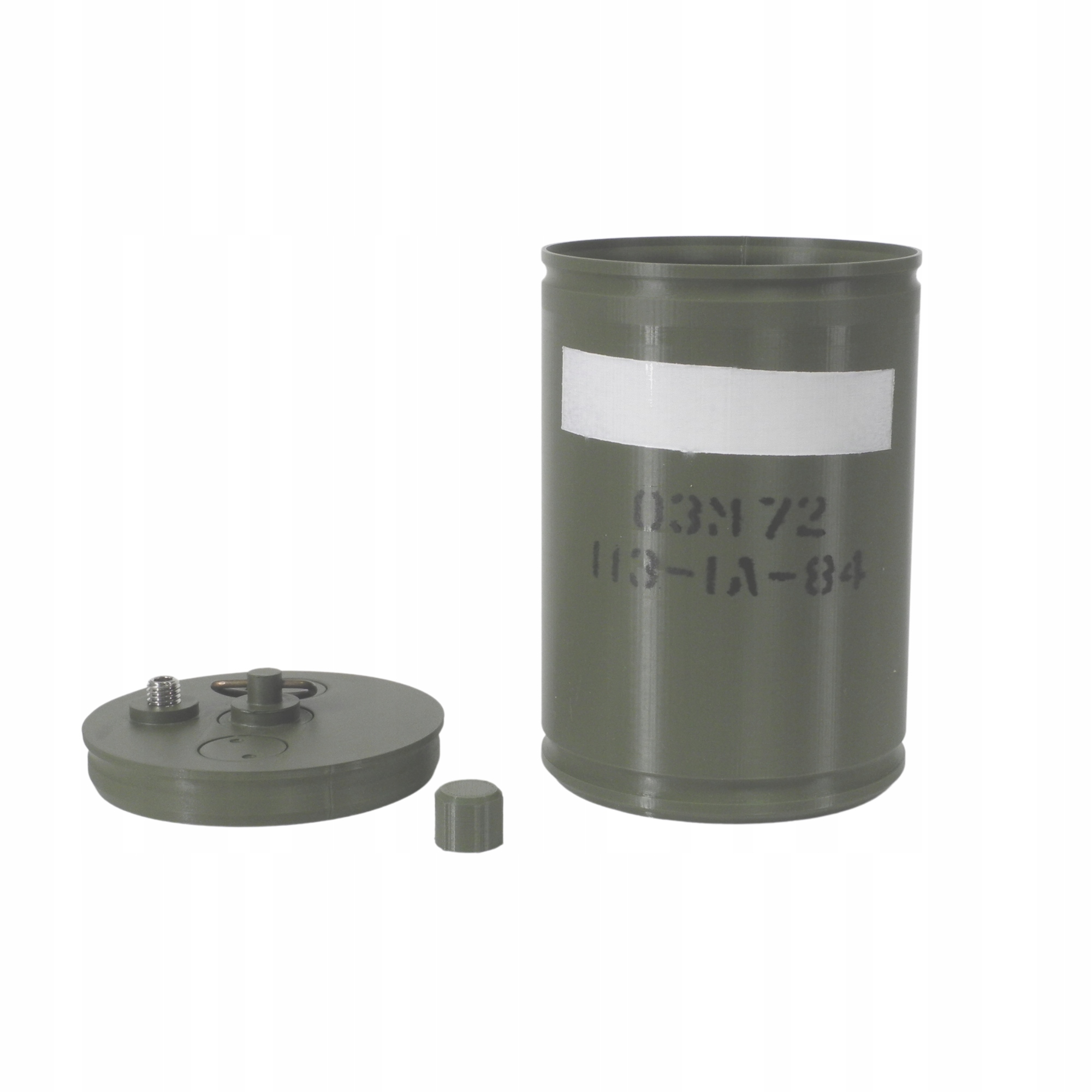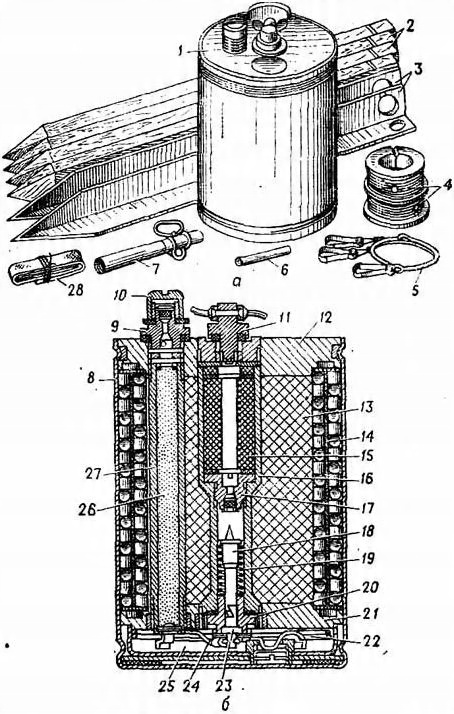 В крышке расположена гильза с имитацией запального взрывателя, закрытая заглушкой.