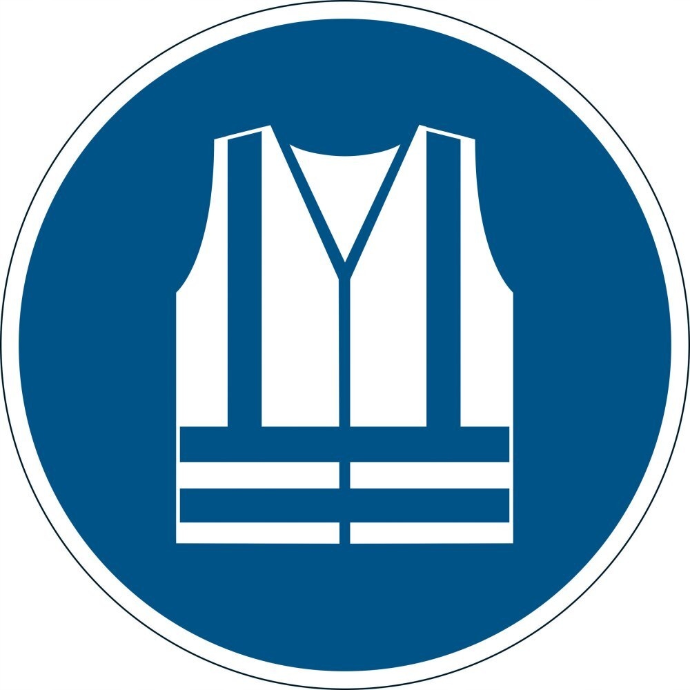 Знак охраны труда и техники безопасности, самоклеящийся, круглый пол с символом «ИСПОЛЬЗУЙТЕ ЗАЩИТНОЕ СРЕДСТВО» ЖИЛЕТ для обозначения проходов.