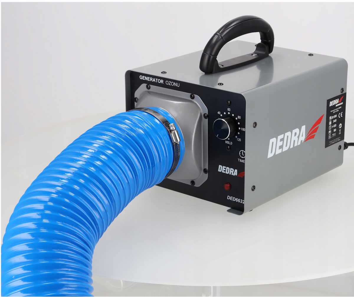 Профессиональный озонатор DEDRA DED6632 преобразует кислород (O₂) в озон (O₃). Глубоко дезинфицирует воздух и поверхности – без применения химикатов. Он действует как сильный стерилизатор и окислитель.