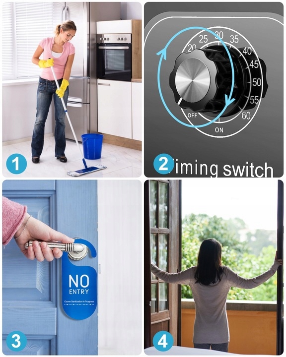 - Просто подключите его, поверните ручку времени генератора озона, нажмите переключатель и выйдите из комнаты. Запахи будут нейтрализованы, оставив помещение чистым и свежим.