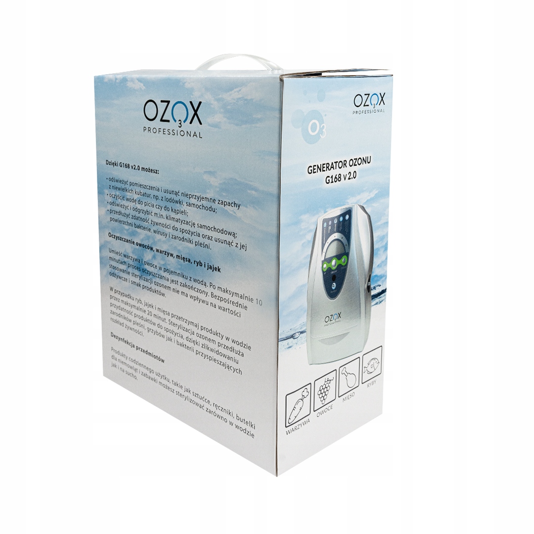 Модель OZOX G168 использует эффект коронного разряда для производства озона. Используемая технология на основе металлического баллона обеспечивает постоянную эффективность озона. Устройство имеет встроенный вентилятор, обеспечивающий эффективное охлаждение – время непрерывной работы: около 4 часов. Модель G168 имеет встроенный таймер с возможностью установки времени работы озонатора: 0-60 минут