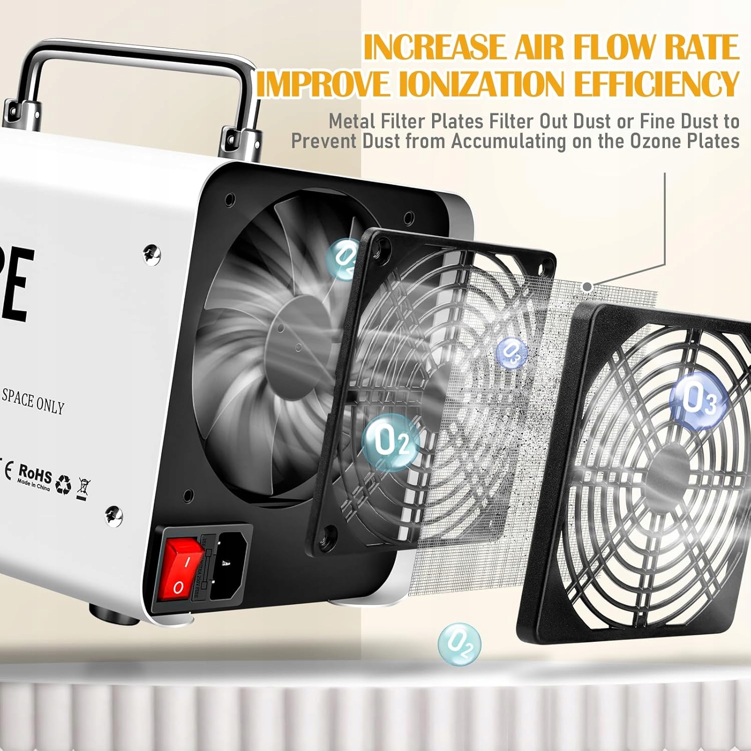 Эффективный генератор озона 300 000 мг/ч быстро устраняет неприятные запахи и очищает пространство до 300 м². Идеально подходит для дома, офиса, автомобиля или ресторанов, обеспечивающих чистый и свежий воздух.