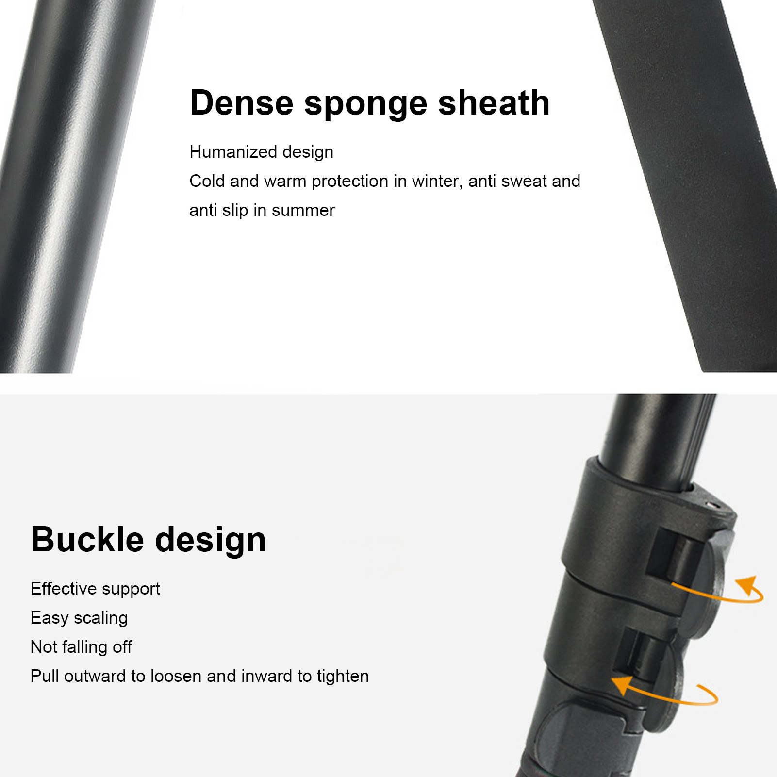 3. Гуманизированный дизайн: монопод оснащен губчатым чехлом, предотвращающим ходьбу зимой и катание летом; В комплект входит портативная сумка, которую можно носить в руке или на плече. Применяет конструкцию троса, препятствующую высвобождению, чтобы предотвратить несчастные случаи, связанные с скольжением или потерей.