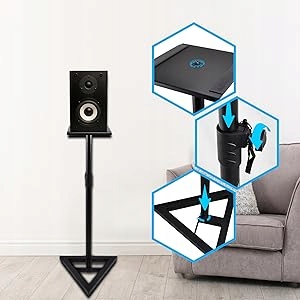 Стоимость динамика стоит Pyle Pro Audio Monitor Monitor обеспечивает прочное и надежное расположение динамиков. Двойные стационарные динамики используются для широкого спектра динамиков в профессиональных студийных приложениях или домашнего кинотеатра. Долговечные спикеры безопасно сохраняют динамики монитора, спутниковые динамики или стационарные динамики - чтобы идеально установить звук для оптимальной эффективности звука. Универсальный дизайн ручки обеспечивает стабильное и безопасное размещение динамиков с треугольными шипами пола.