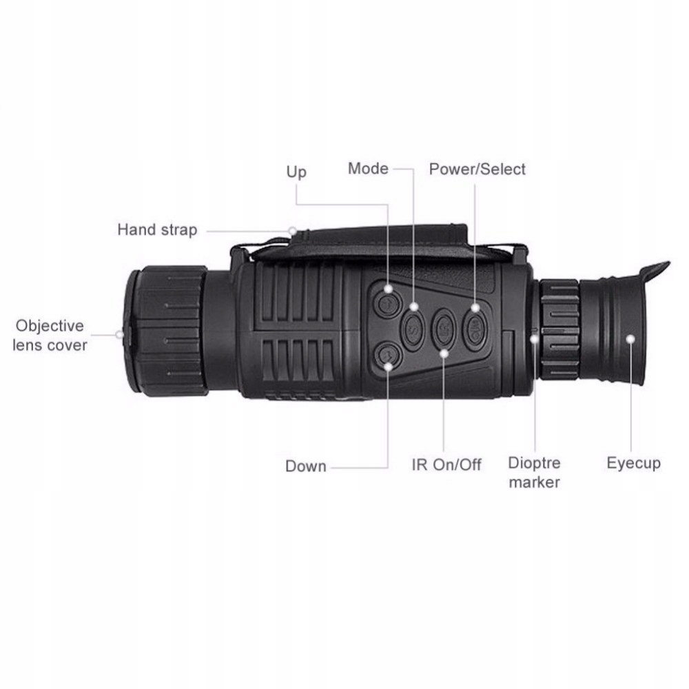 - Монокуляр КМОП-чип имеет широкий диапазон рабочей яркости. Не говоря уже о том, что монокуляр имеет еще и собственный встроенный инфракрасный отражатель, что повышает уровень производительности этого устройства. Это означает, что вы сможете отображать объекты при различных уровнях доступного освещения, будь то в полной темноте или при лунном свете. Это легко сделать. использовать, а запись и другие функции просты в навигации.