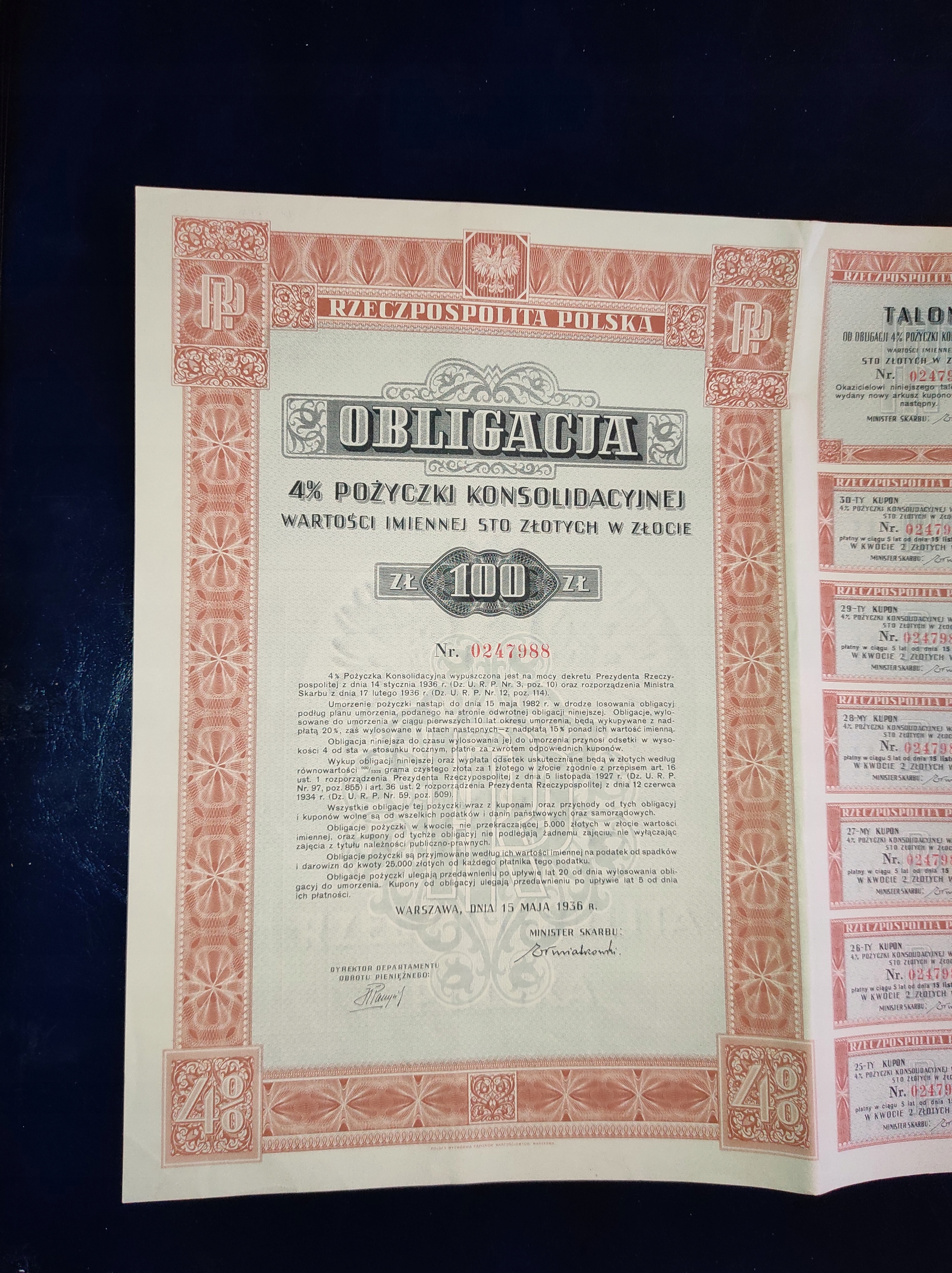 P13#4% облигация 1936 года Для PLN 100 в золоте