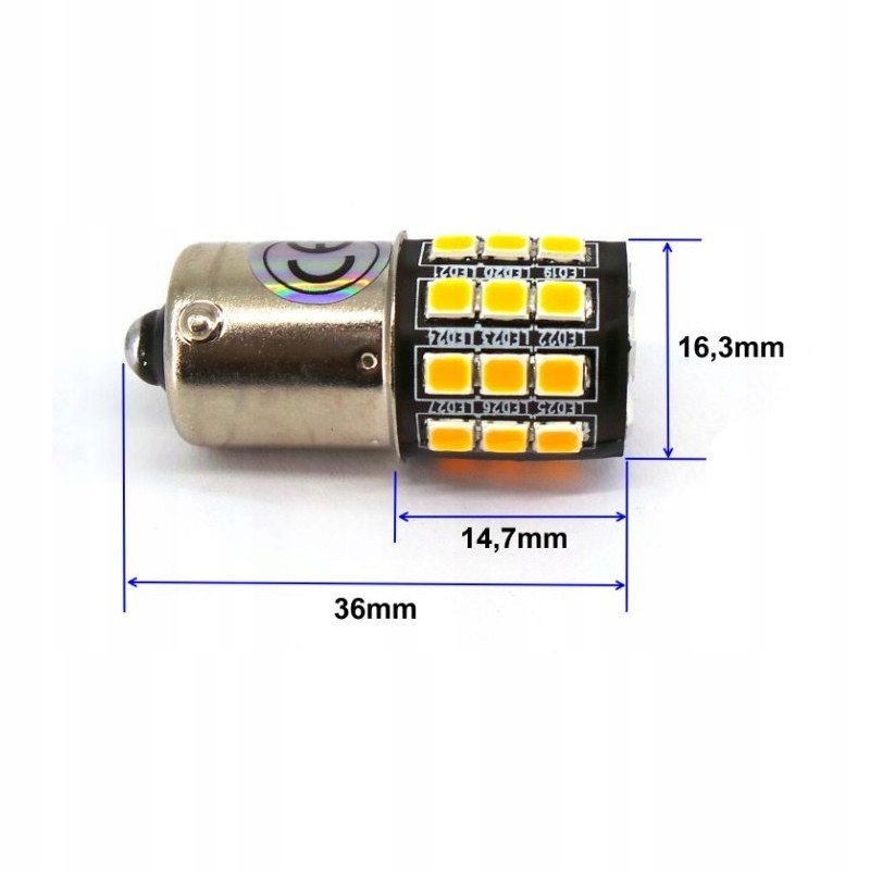 Модель лампочек с оранжевыми диодами — используется для поворотников в автомобилях с белыми, оранжевыми или прозрачными линзами.