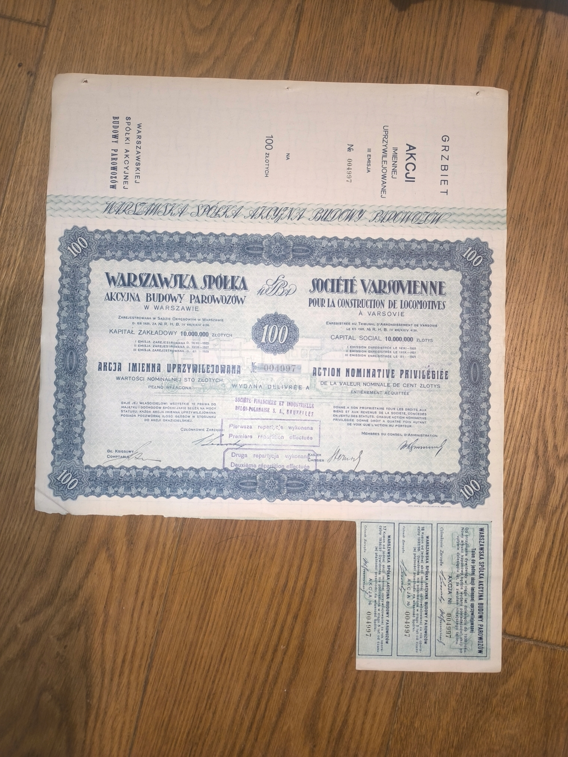 P26A#WARSZAWSKA SPÓŁKA BUDOWY PAROWOZÓW - AKCJA UPRZYWILEJOWANA 100 ZŁ