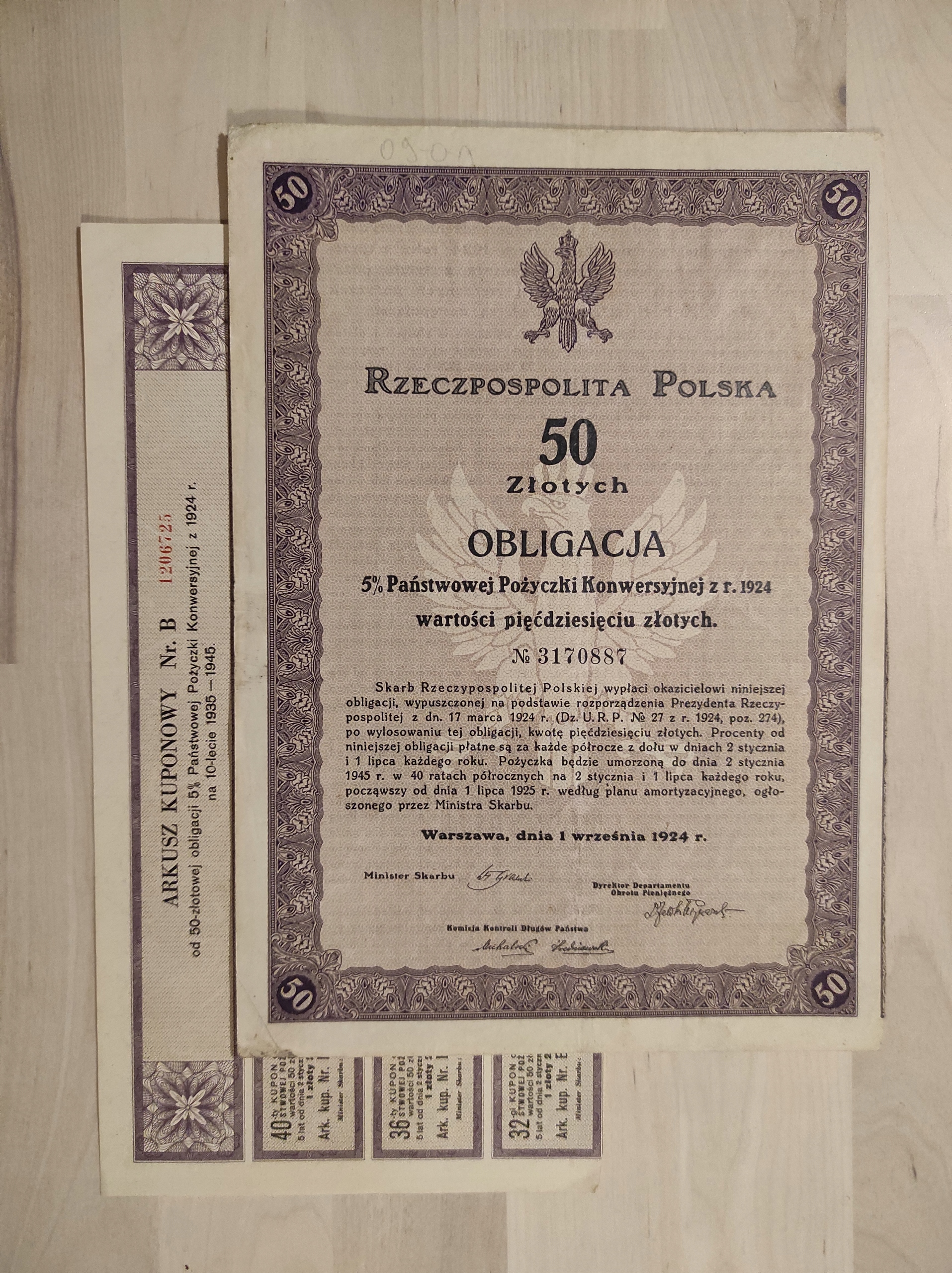 P34#5% OBLIGACJA Z 1924R. NA 50 ZŁ