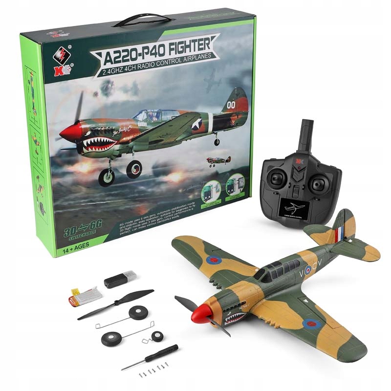 ВОЕННЫЙ САМОЛЕТ С ДИСТАНЦИОННЫМ УПРАВЛЕНИЕМ P40 A220 XK WLTOYS 3D/6G