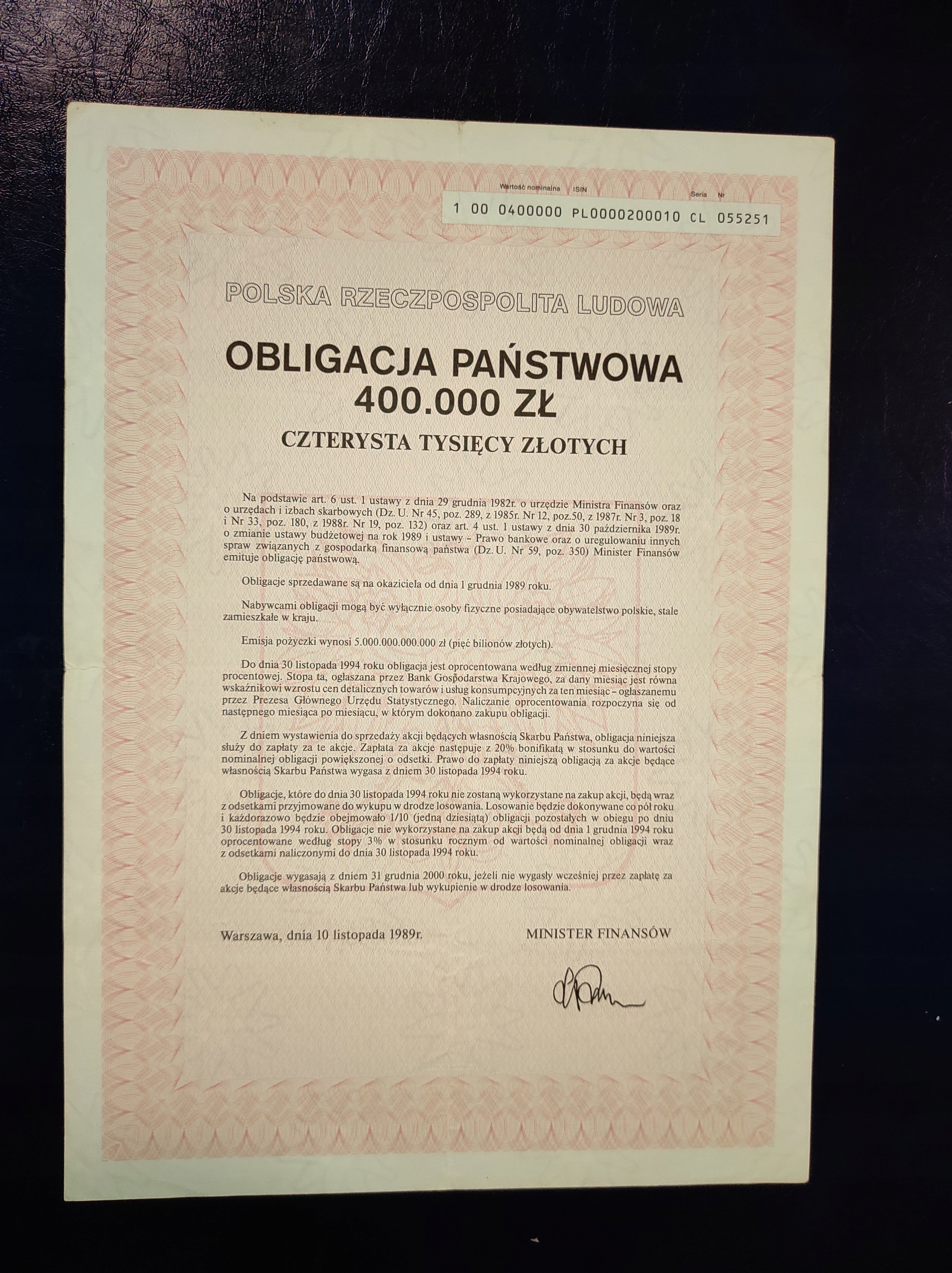 Просматривая «P61#OBLIGACJA NA 400 000 ZŁ» данное изделие из «цінні папери» вы можете быть уверены, что после оформления заказа, доставки в Украину, вы получите именно то, что заказывали, в оговоренные сроки и европейского качества.