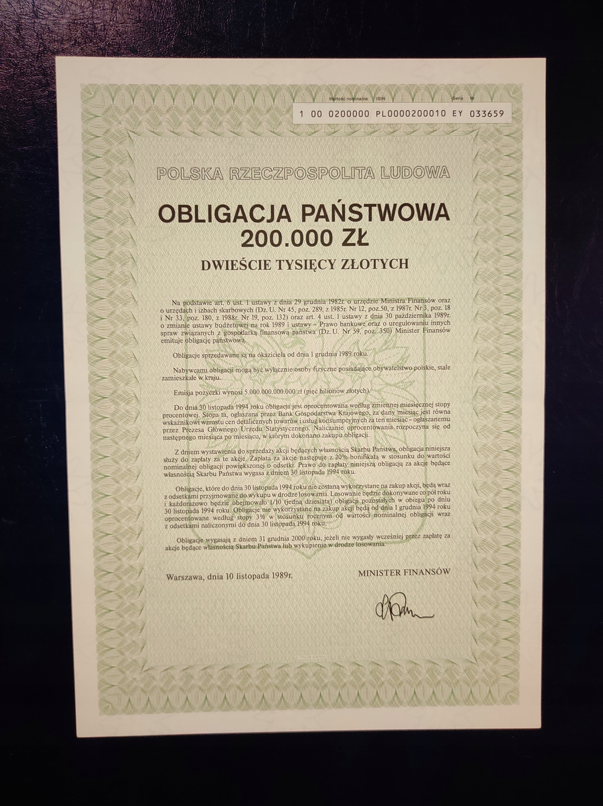 Оплачивая «P62#OBLIGACJA NA 200 000 ZŁ» данный товар из каталога «цінні папери», вы можете получить дополнительную скидку 4%, если произведете 100% предоплату. Размер скидки вы можете увидеть сразу при оформлении заказа на сайте. Внимание!!! Скидка распространяется только при заказе через сайт.