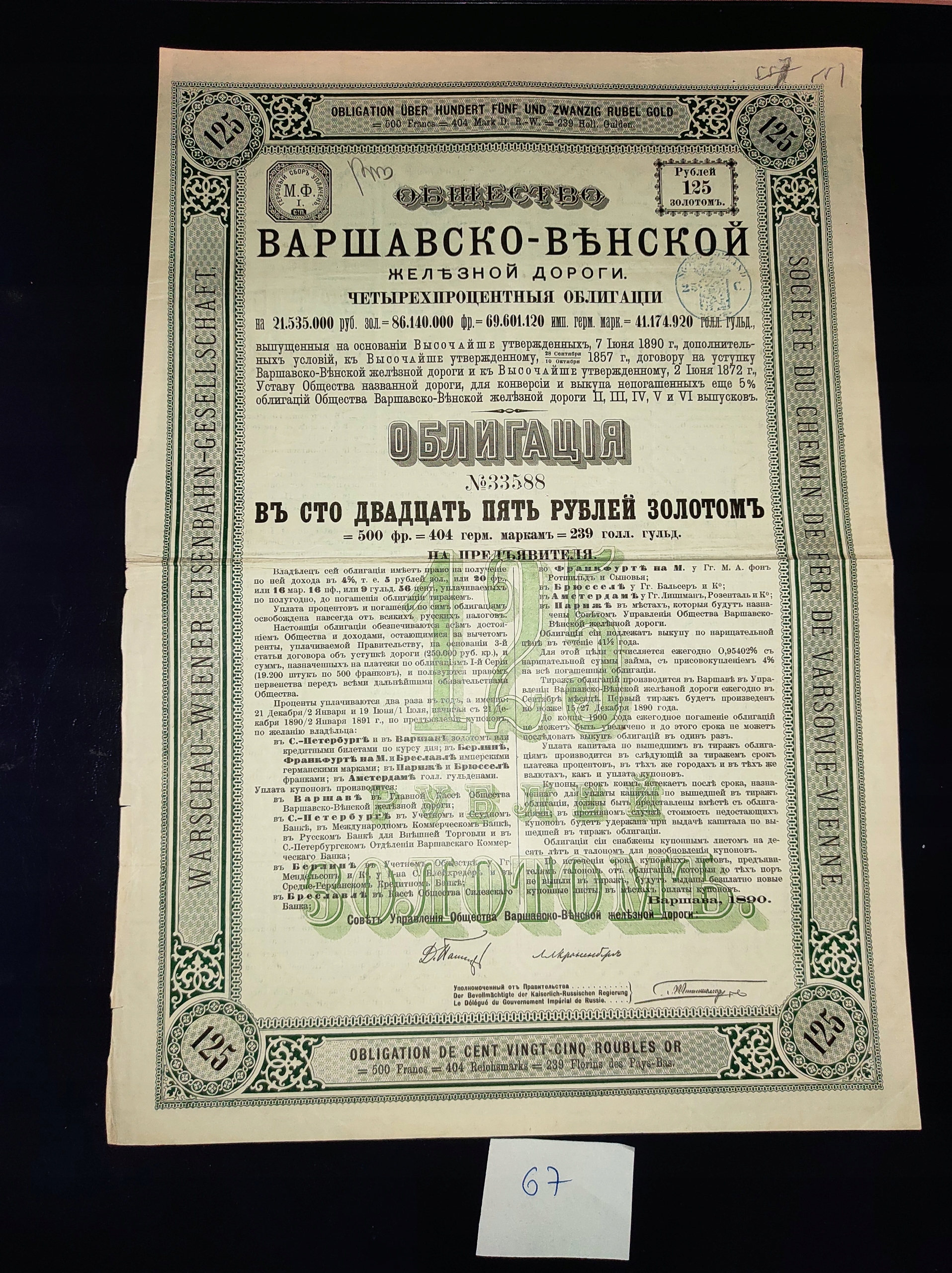 Заказывая «P6#ВАРШАВА-ВЕНСКАЯ ЖЕЛЕЗНАЯ ДОРОГА 125 РУБЛЕЙ В ЗОЛОТЕ 1890 ГОДА» данное изделие из «цінні папери» вы можете быть уверены, что после оформления заказа, доставки в Украину, вы получите именно то, что заказывали, в оговоренные сроки и европейского качества.