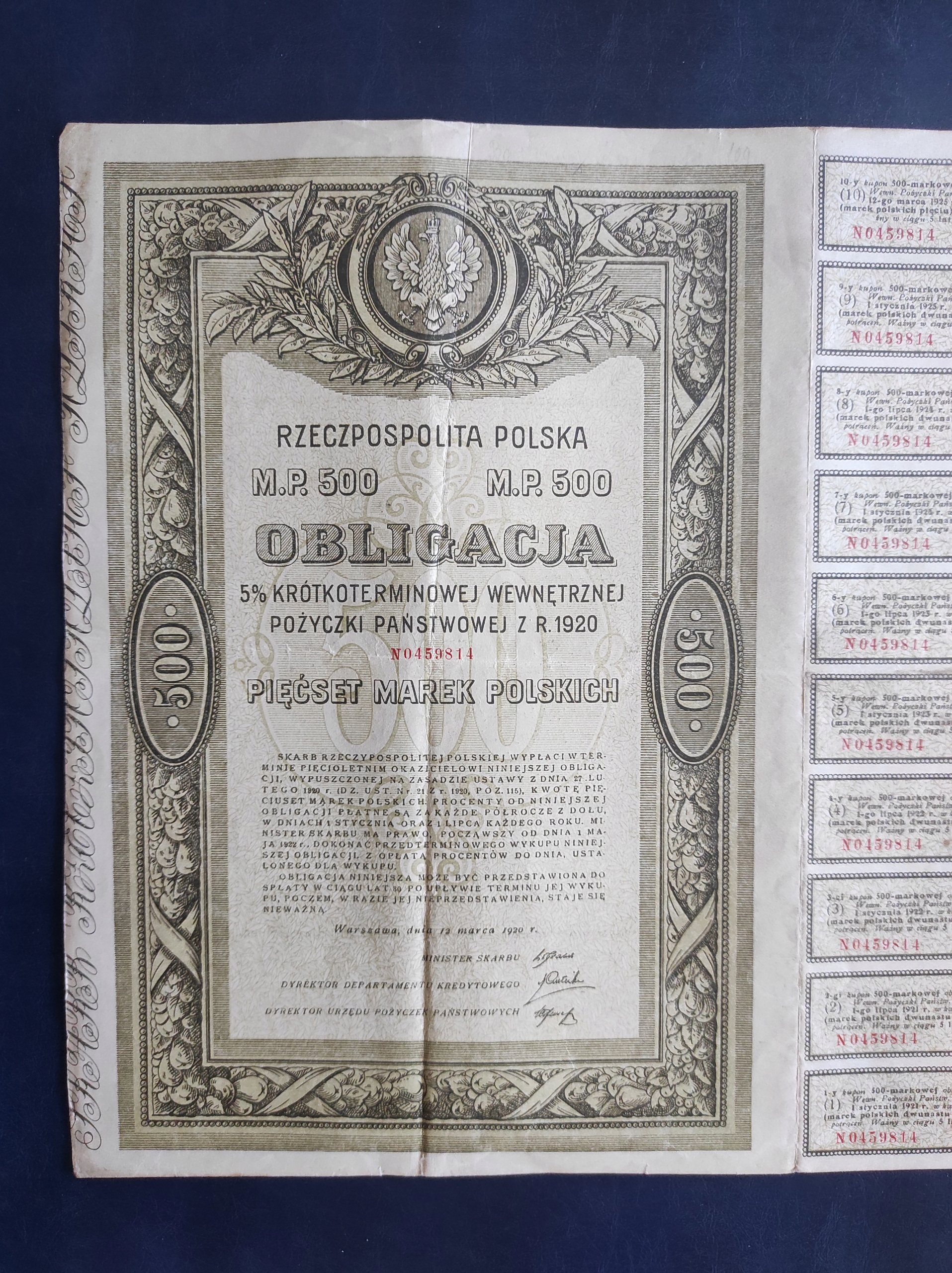 P81# OBLIGACJA 5 % KRÓTKOTERMINOWEJ POZYCZKI Z 1920 ROKU