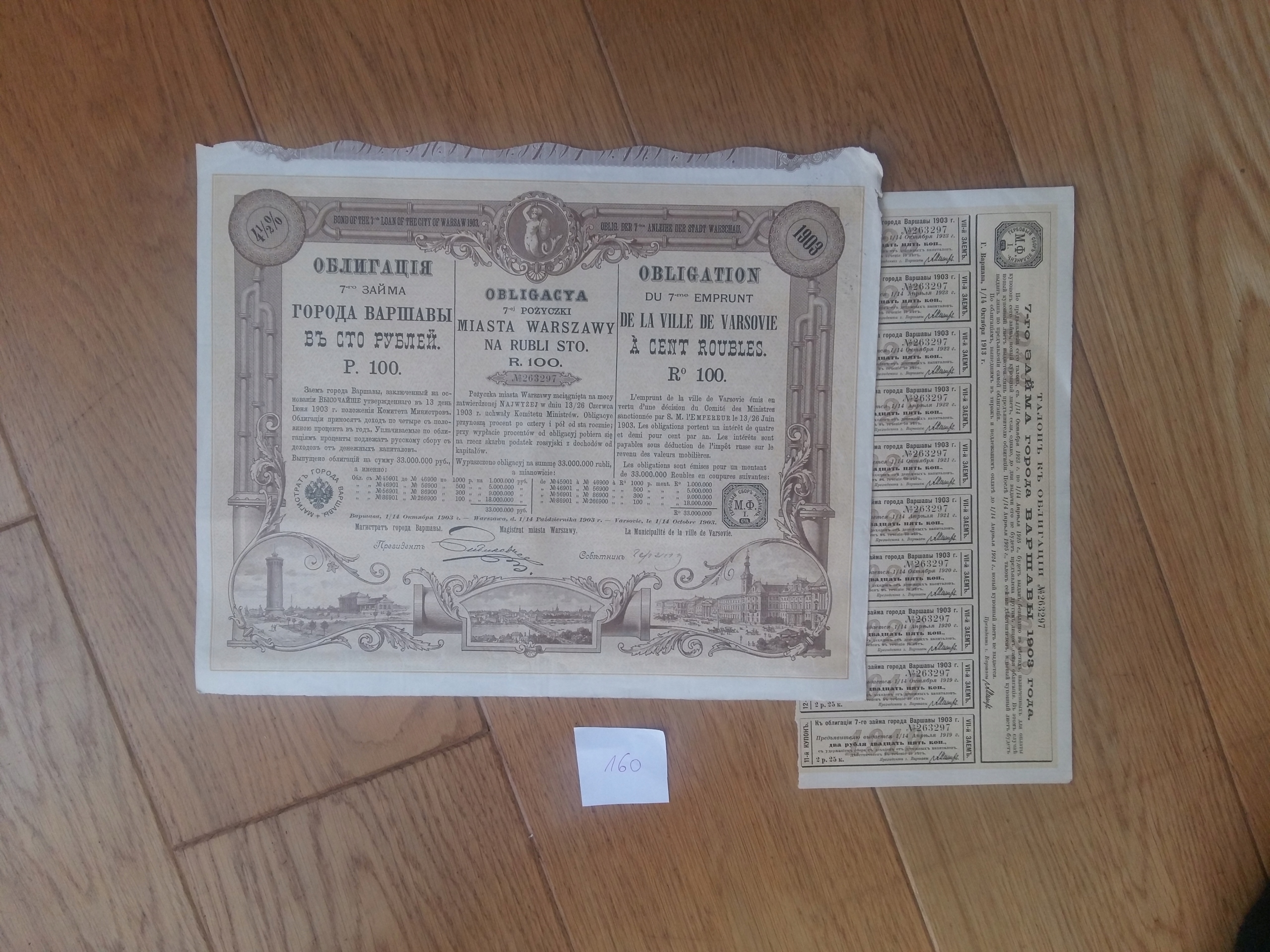 P8#OBLIGACJA WARSZAWY @ 1903 ROK # 100 RUBLI - SUPER WIDOCZKI