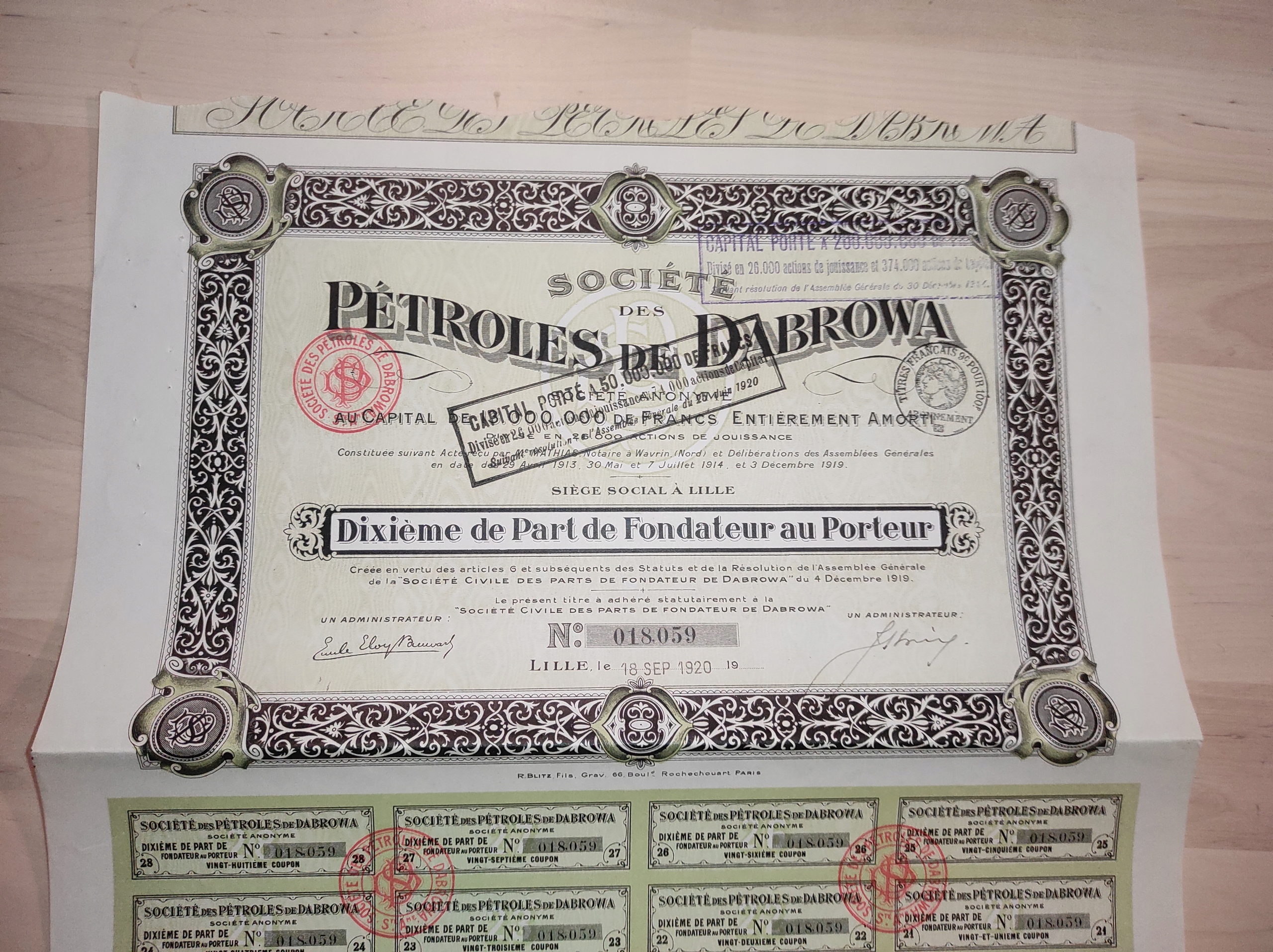 Оплачивая «P90#PETROLES DE DABROWA 1920 POLSKA NAFTA KRESY» данный товар из каталога «цінні папери», вы можете получить дополнительную скидку 4%, если произведете 100% предоплату. Размер скидки вы можете увидеть сразу при оформлении заказа на сайте. Внимание!!! Скидка распространяется только при заказе через сайт.
