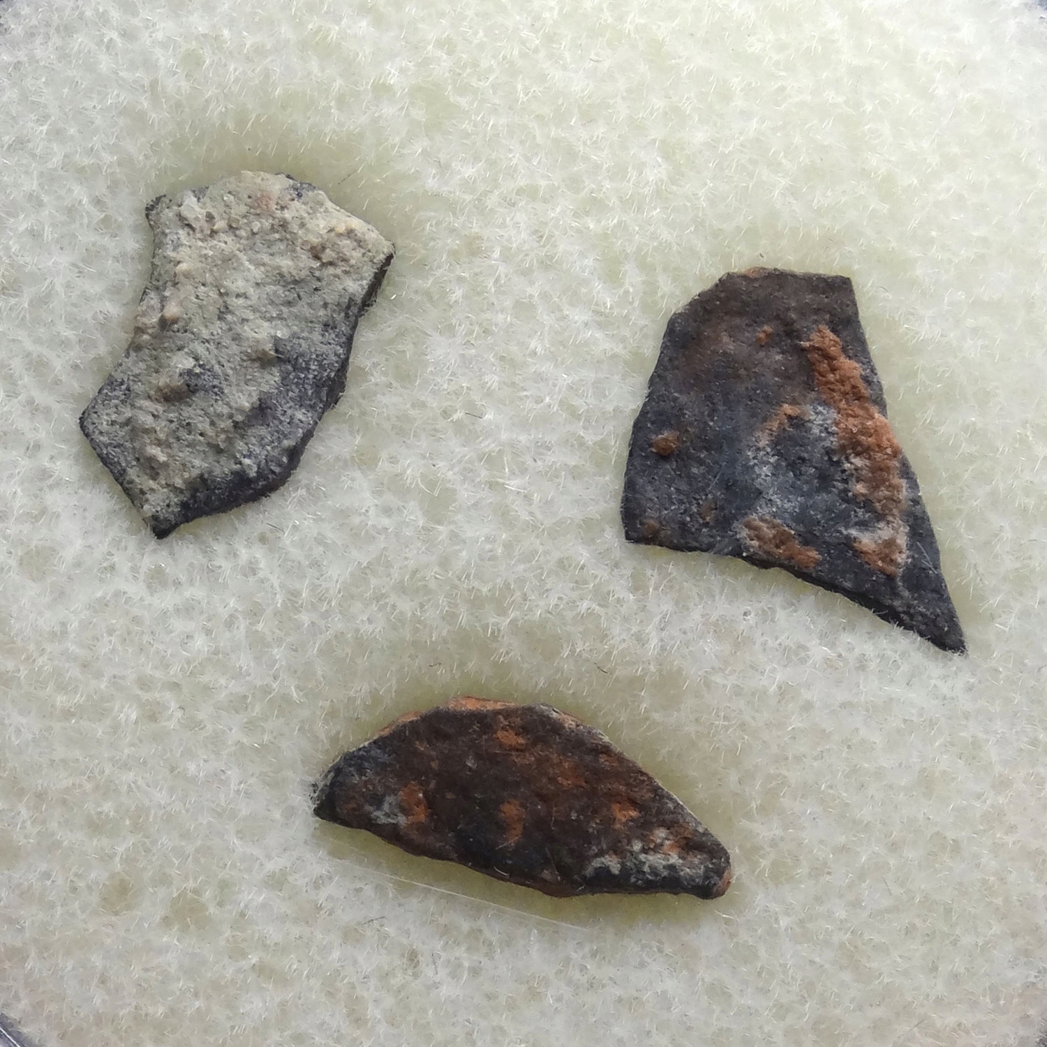 Три подлинных фрагмента яичной скорлупы динозавра.