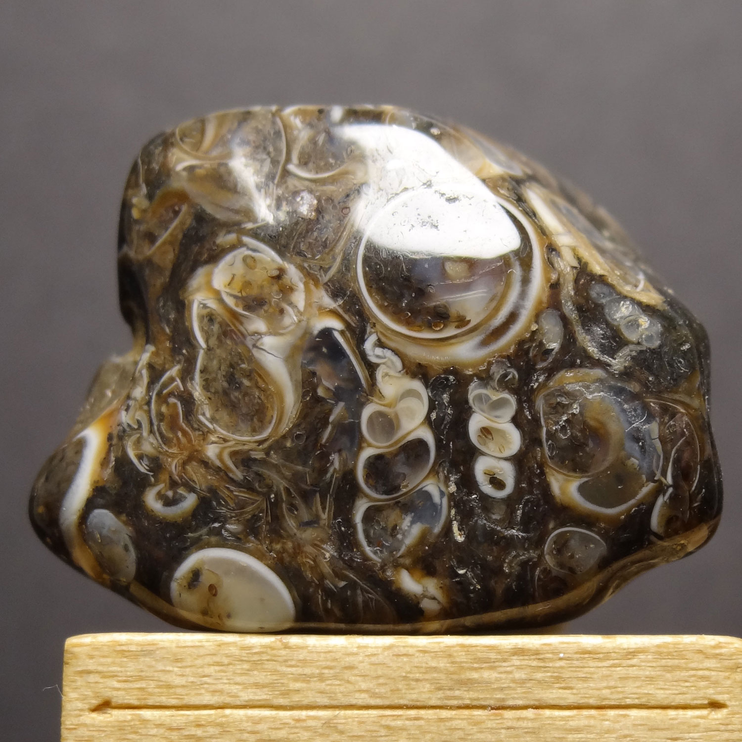 Общее название «агат раковины туррителлы» связано с тем, что раковины Эльмии по форме похожи на раковины морской улитки Turritella.